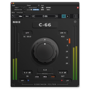 • Body Circuit: Applies a low-shelf filter at 250Hz, with a Q of .9, which allows for precise tonal balancing after compression.