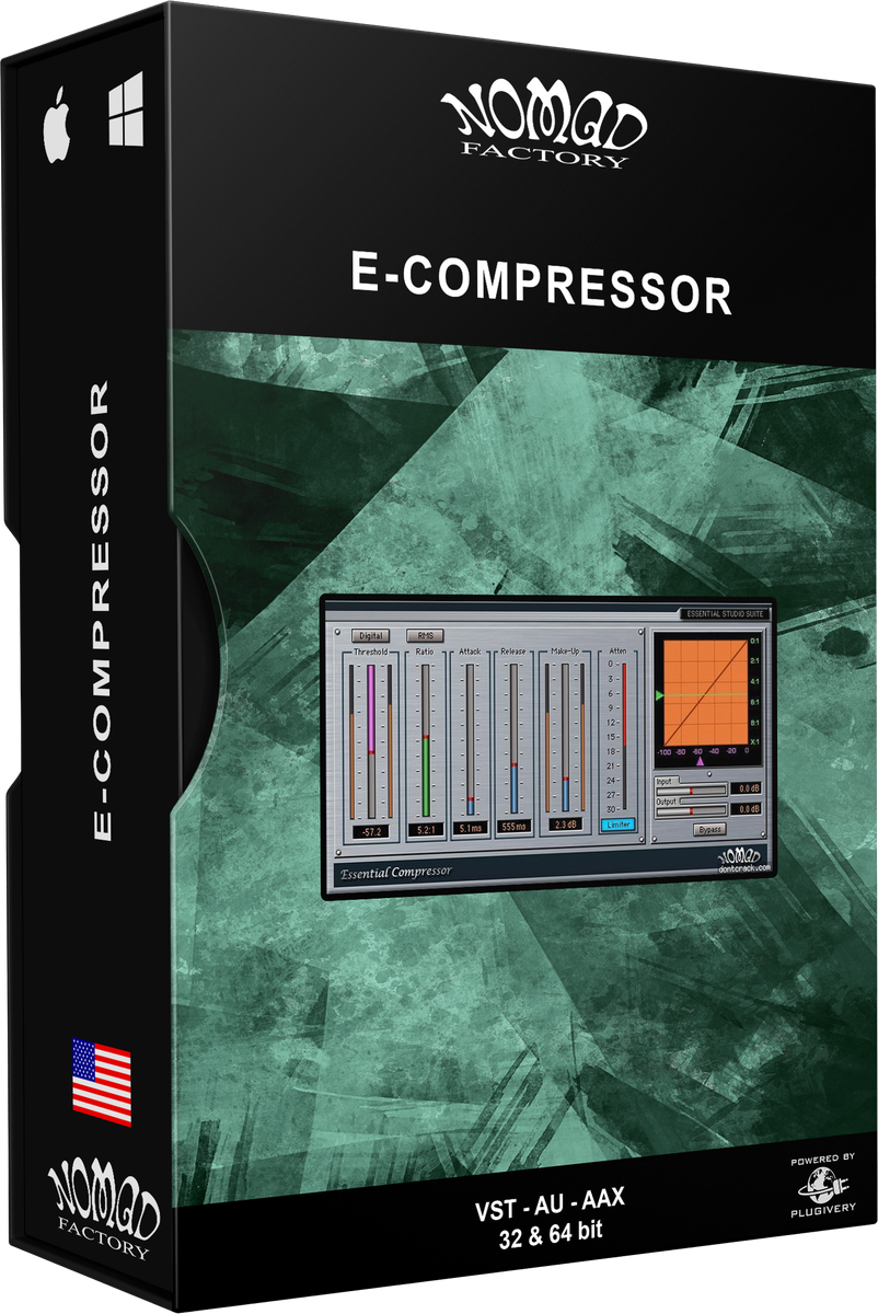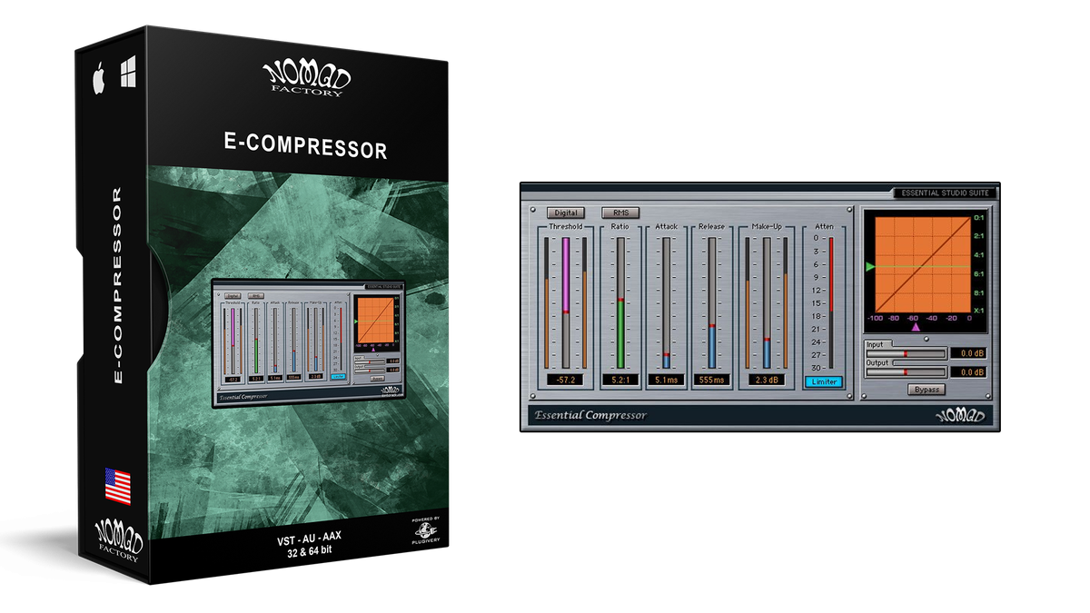 A quality compressor is an integral part of any studio toolkit. And with the Essential Compressor, every studio can be assured of professional results.The Essential Compressor is like having several compressors in one plug-in. Choose analog or digital compression, and Peak or RMS compression. This compressor provides intuitive control over the Threshold, Ratio, Attack, Release, and Make-Up gain. The Essential Compressor also enables adjustment of the Threshold and Ratio parameters within a graphical display. Other features include Brick-Wall Limiting, and individual Input and Output level controls.