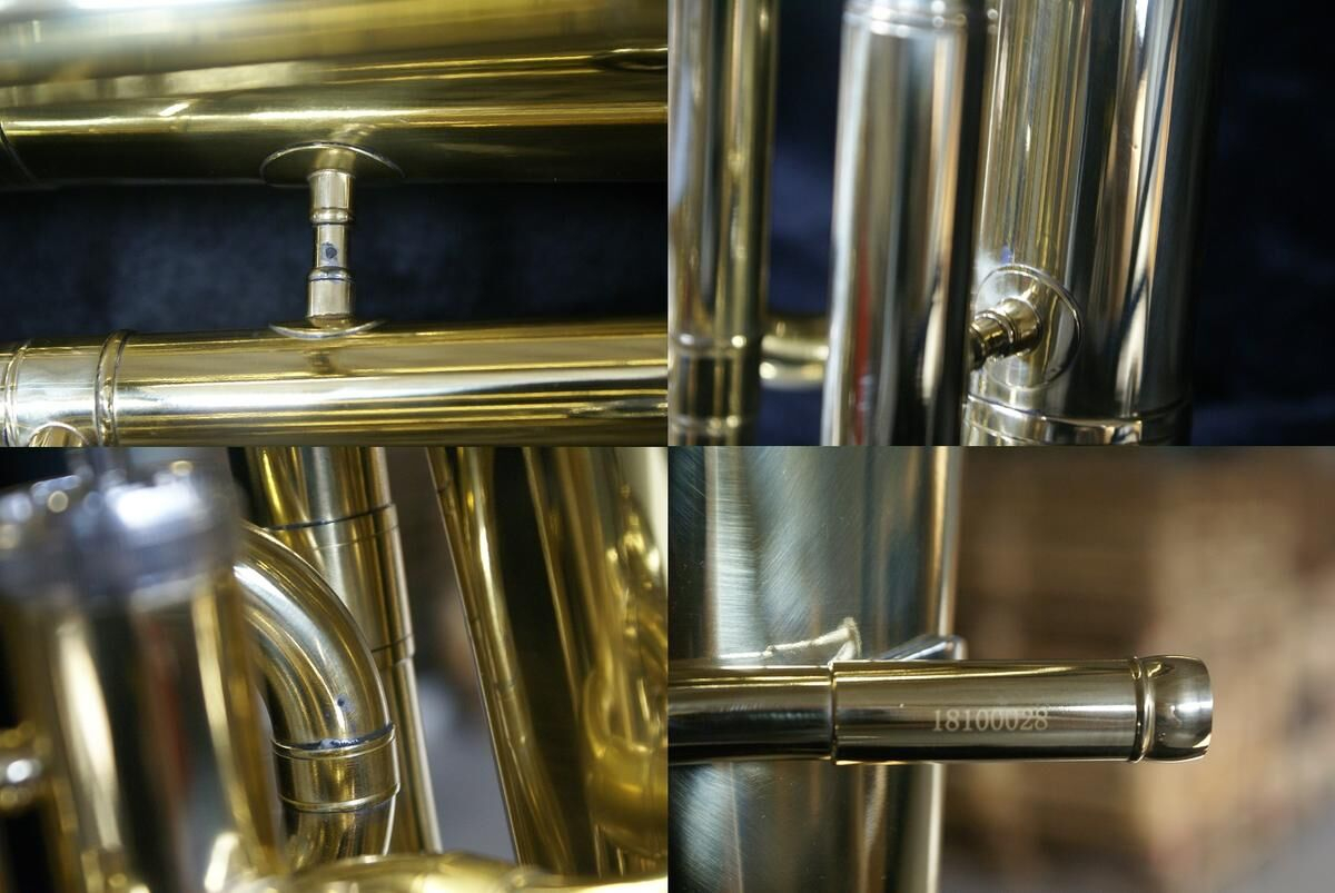 • Eb Euphonium, 300 series. Valves: 4 (3 front-facing pistons + 1 side piston). Bore size: 14.5 mm. Bell diameter: 280 mm. Lacquered finish. Comes with a black nylon case and a mouthpiece.