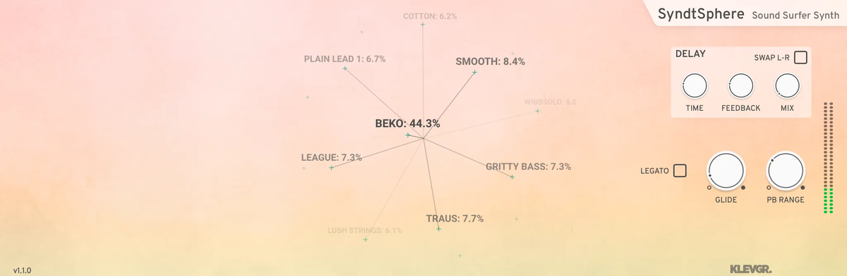 SyndtSphere is a software synthesizer developed by Klevgrand, designed to offer a unique and intuitive synthesis experience. This plugin stands out for its innovative sphere-shaped user interface, allowing users to easily navigate between different presets and create complex sounds with great ease.