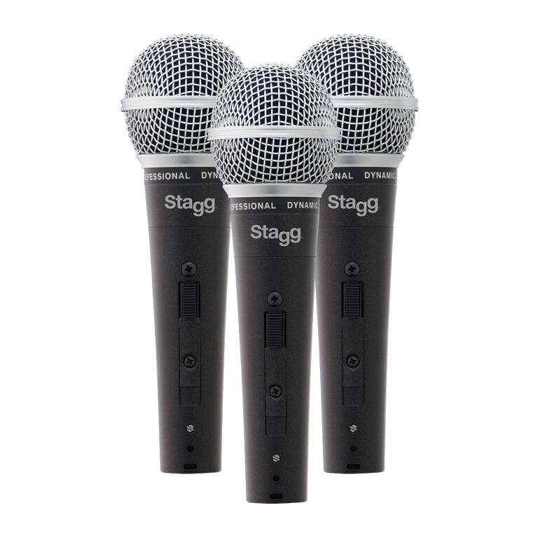 Set of 3 cardioid dynamic microphones, professional model, DC 78 cartridge.