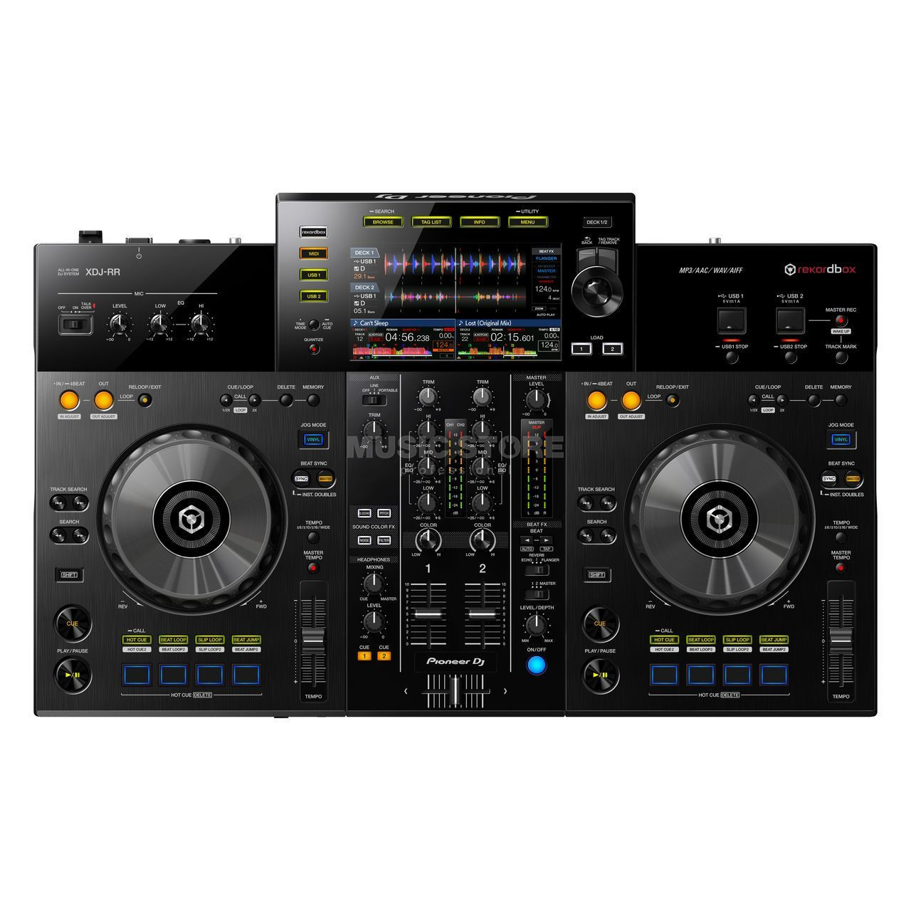 Take your DJing to the next level with the XDJ-RR all-in-one DJ system for rekordbox. This 2-channel DJ solution takes design cues and essential functions from professional NXS2 multi-format players and mixers, all packed into a portable, lightweight device. It will allow you to get familiar with the type of equipment found in clubs, helping you transition from "home-DJ" to mixing at parties, bars, and soon, clubs. Play from music stored on your USB sticks or external hard drives, access your library via Link Export, or use Performance mode through your laptop, depending on your preferred mixing style. The 7-inch color screen keeps you in sync with the beat as you manipulate tracks using dedicated Beat and Sound Color effects. With everything you need to create unique mixes on the fly, the XDJ-RR will have the dancefloors packed in no time.