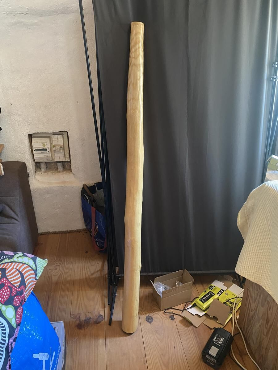 The low and deep sound is perfect for this purpose. It is a wooden instrument, hollowed out and handmade by a craftsman from Ferrette in Alsace.