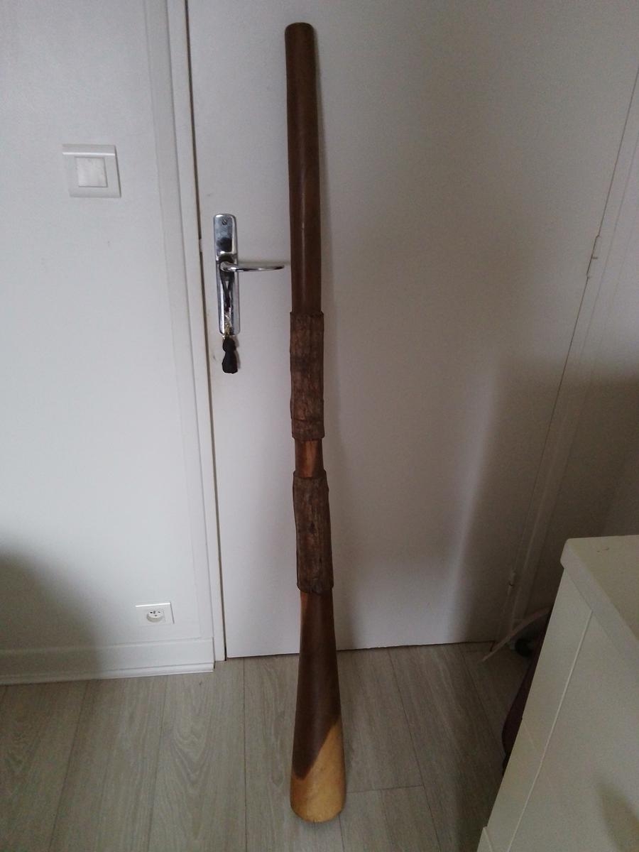 Authentic didgeridoo, made of wood, low pitch (A), no cracks, like new.