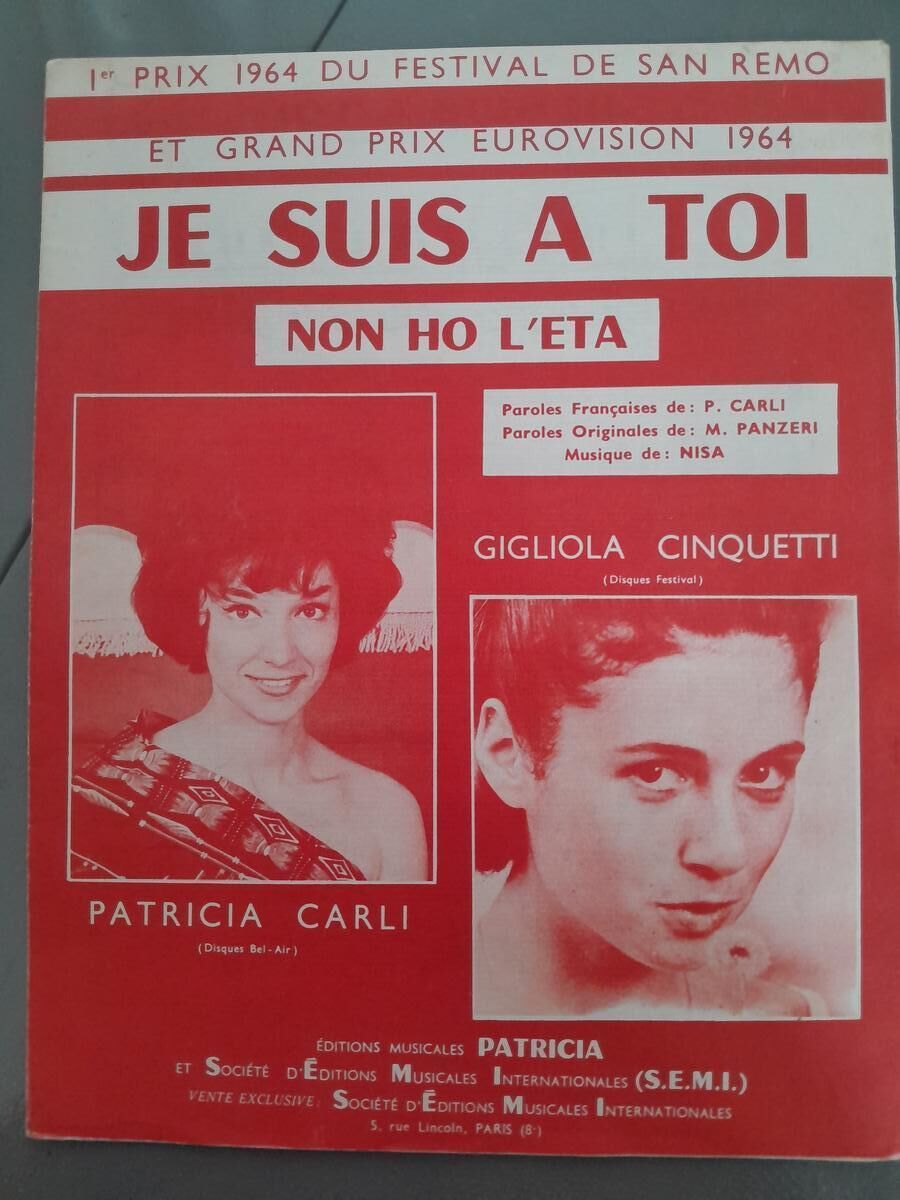 1964 First Prize Sheet Music from the San Remo Festival and the Eurovision Grand Prix 1964