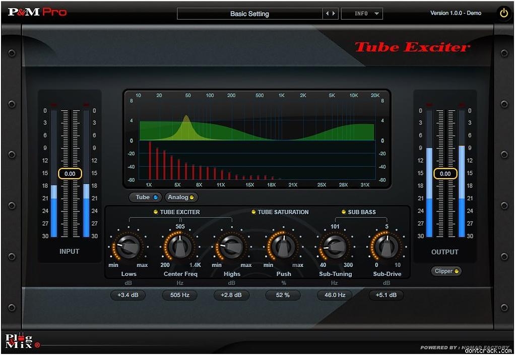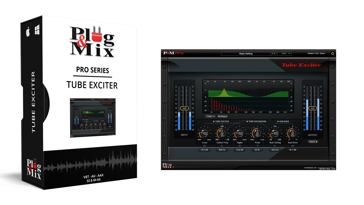 The plug-in features Tube Exciter, Tube Saturation and Sub Bass enhancers which can enrich your sound in subtle and drastic ways.