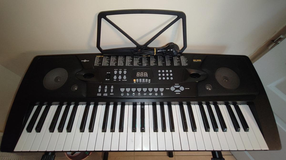 I'm selling a Gear4music MK-2000 keyboard, 220v power supply included + microphone provided with its adjustable height stand.