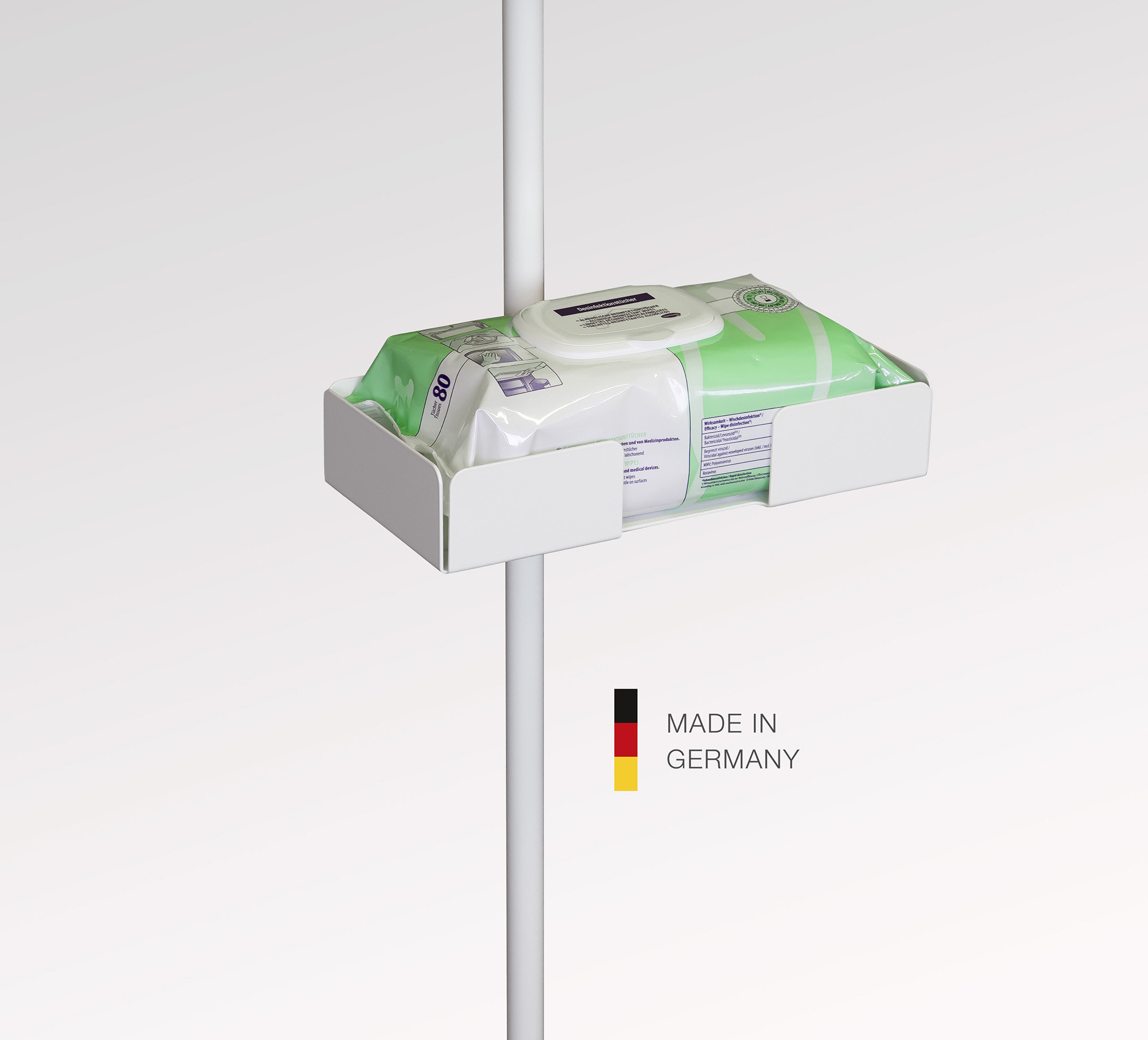 Because it combines versatility, compatibility with tubes up to 30 mm, and useful dimensions for easily organizing hygiene products, while remaining simple to attach to a compatible disinfectant stand.