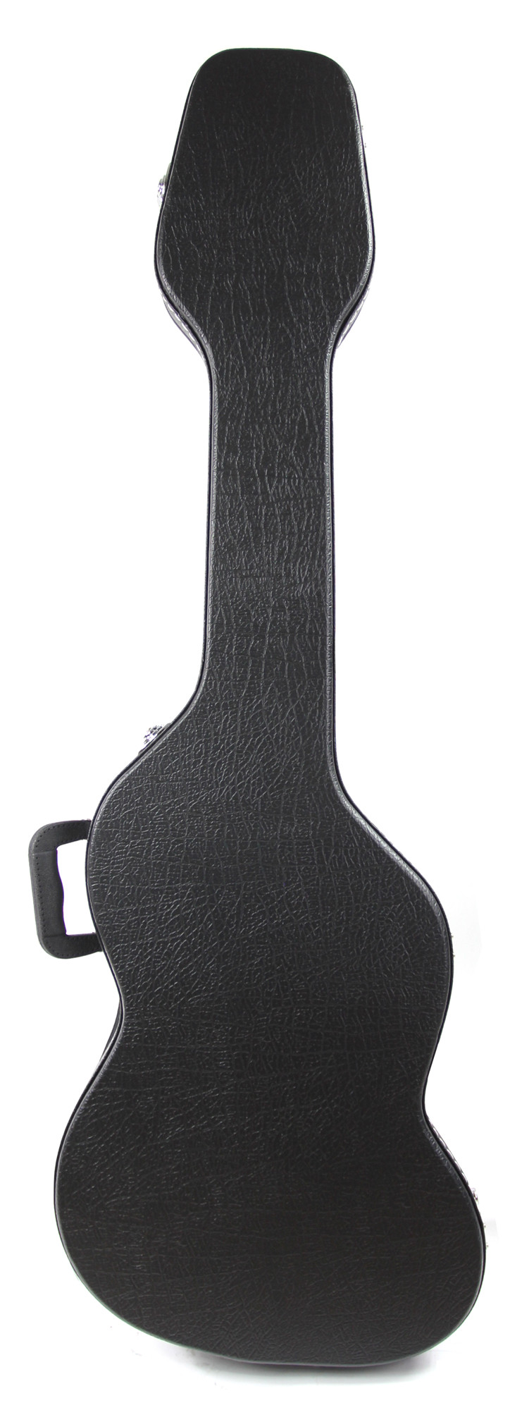 It stands out for its wooden construction, its specific shape for bass guitar, and its black finish, making it a simple and consistent option for those looking for a case suited to their instrument.