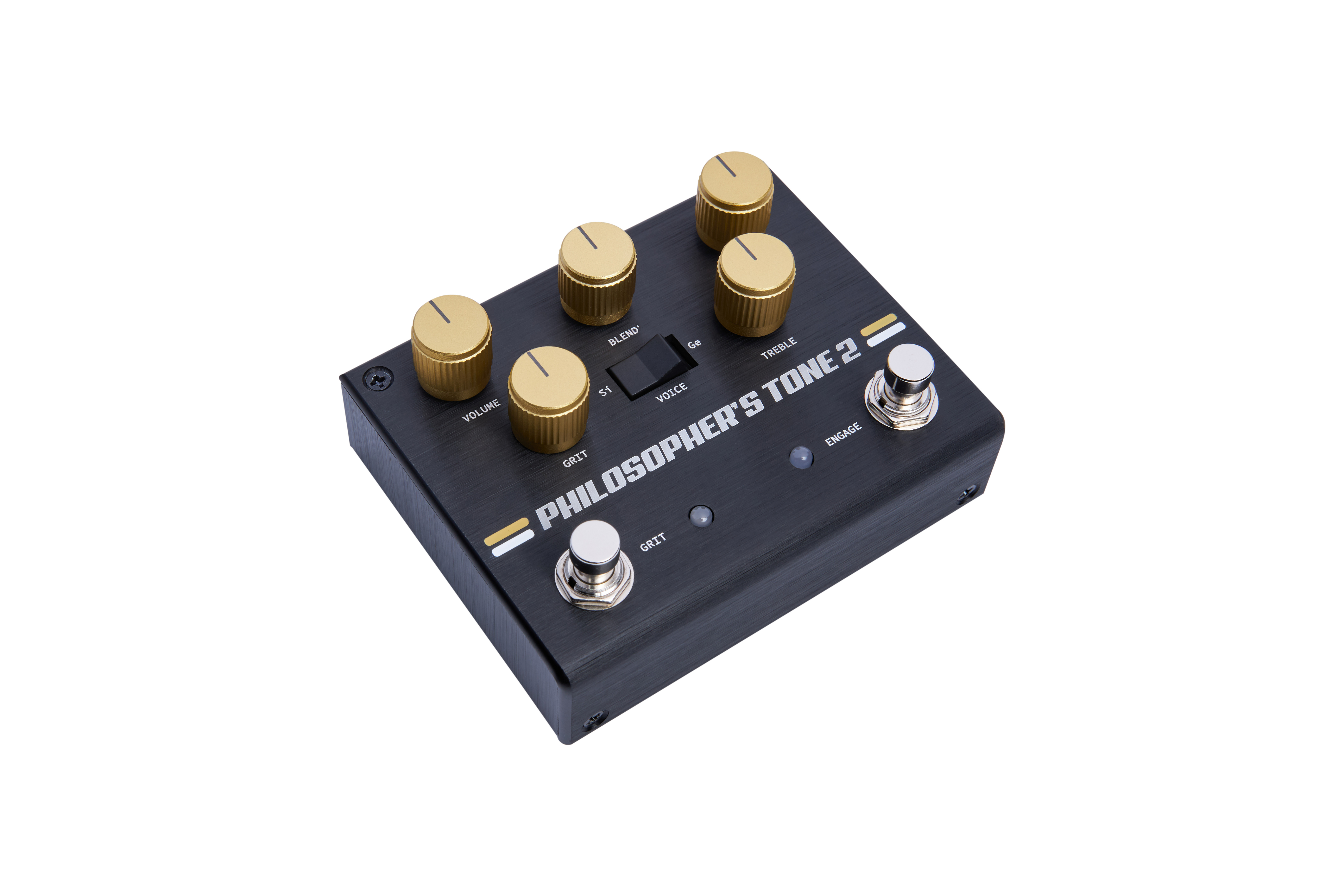 The Philosopher's Tone 2 is a world-class compressor/sustainer featuring a footswitchable Grit circuit, offering even greater versatility. It incorporates a refined version of the overdrive circuit first seen on the limited-edition Gold release of this iconic pedal. Its germanium distortion delivers smooth highs and rich mids, perfectly suited to the optical sustainer that drives it.