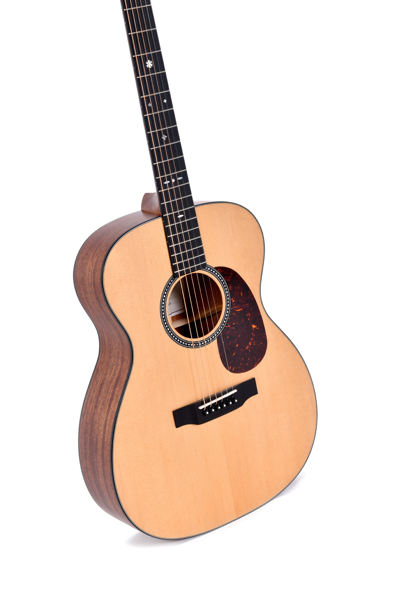 It stands out for its solid tonewoods, its Sitka spruce top and solid mahogany body, as well as finishing details such as the bone nuts and saddle, micarta fingerboard, and nickel-plated Grover tuners, which provide a sense of quality and reliability.