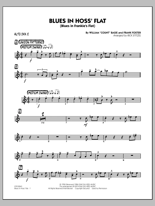 Blues in Hoss' Flat (Blues in Frankie's Flat) - Alto Sax 1
