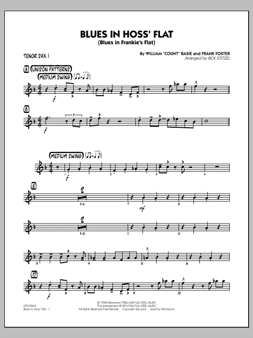 Blues in Hoss' Flat (Blues in Frankie's Flat) - Tenor Sax 1
