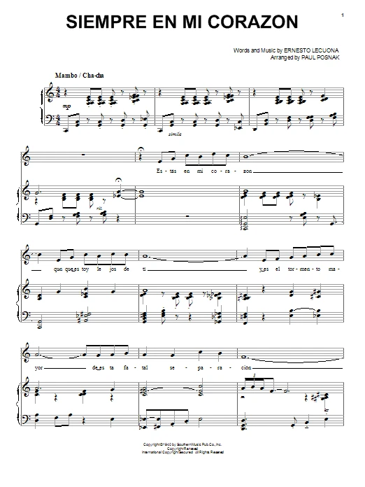 Writers: Ernesto Lecuona, Paul Posnak