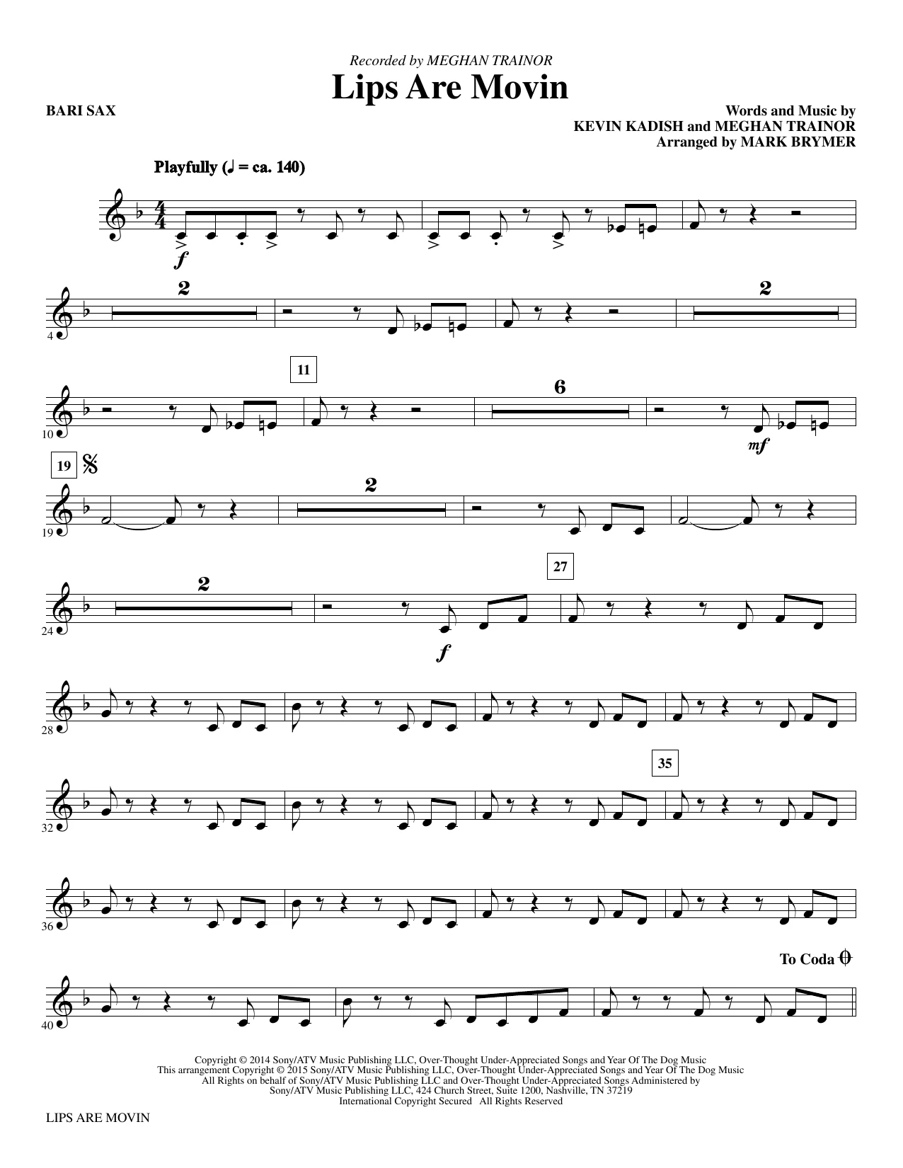 Lips Are Movin (arr. Mark Brymer) - Baritone Sax