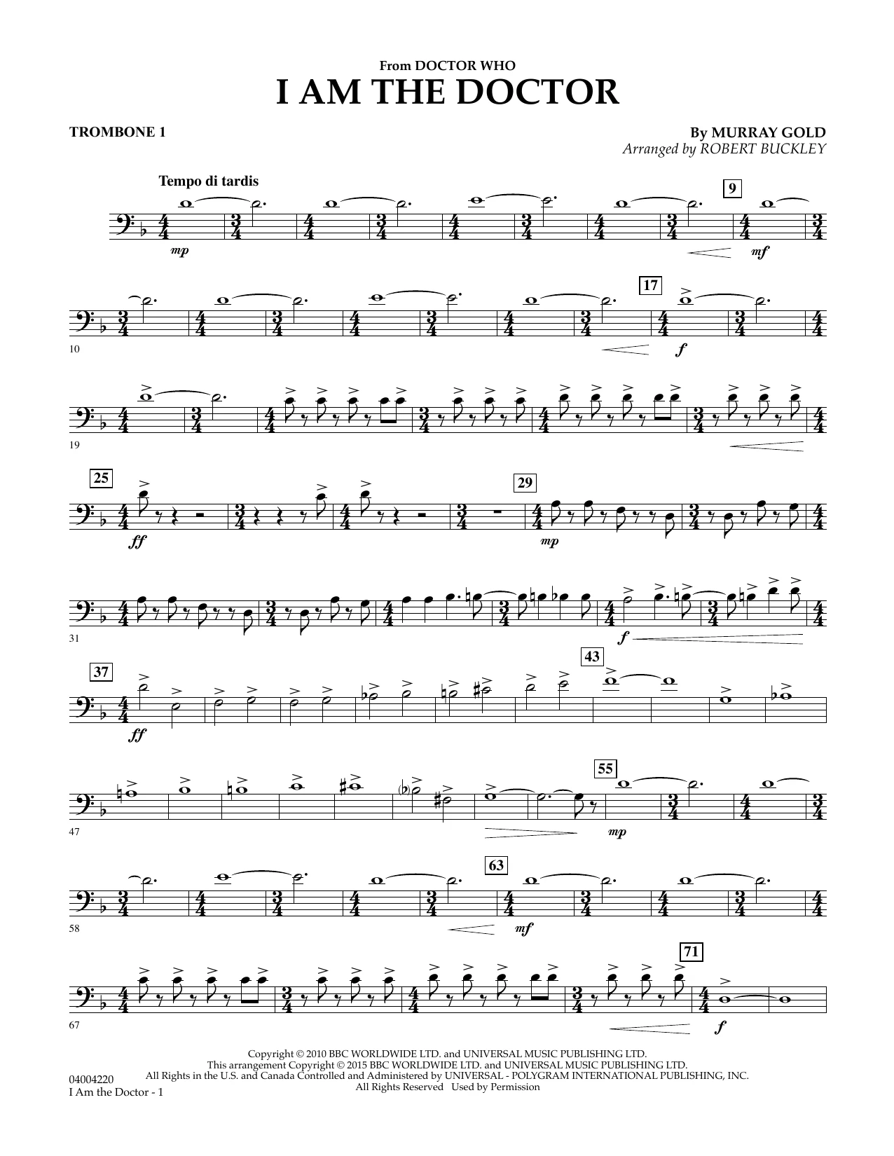 I Am the Doctor (from Doctor Who) - Trombone 1