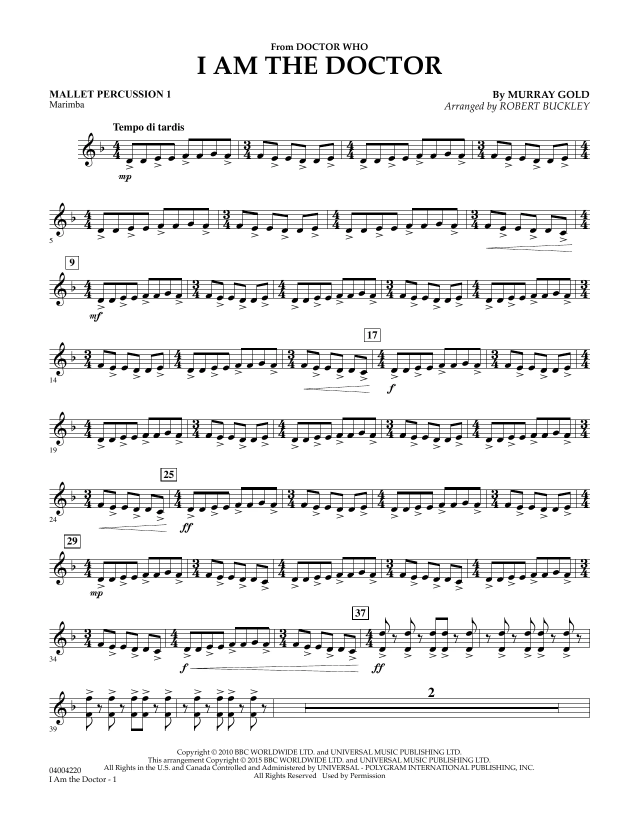 I Am the Doctor (from Doctor Who) - Mallet Percussion 1
