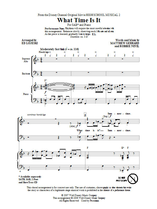 Writers: Ed Lojeski, Robbie Nevil, Matthew Gerrard, High School Musical
