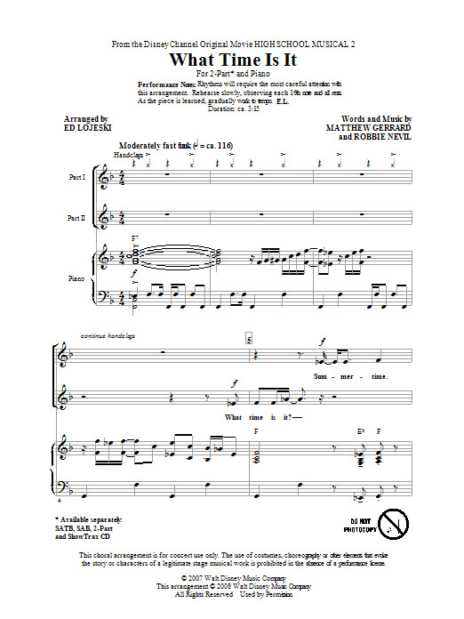 Writers: Ed Lojeski, Robbie Nevil, Matthew Gerrard, High School Musical