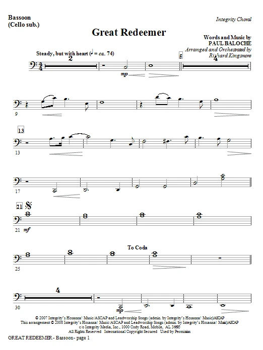 Great Redeemer - Bassoon (Cello sub.)