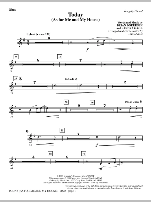 Today (As For Me And My House) - Oboe