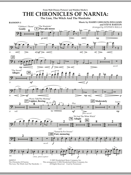 Music from The Chronicles Of Narnia: The Lion, The Witch And The Wardrobe - Bassoon 1