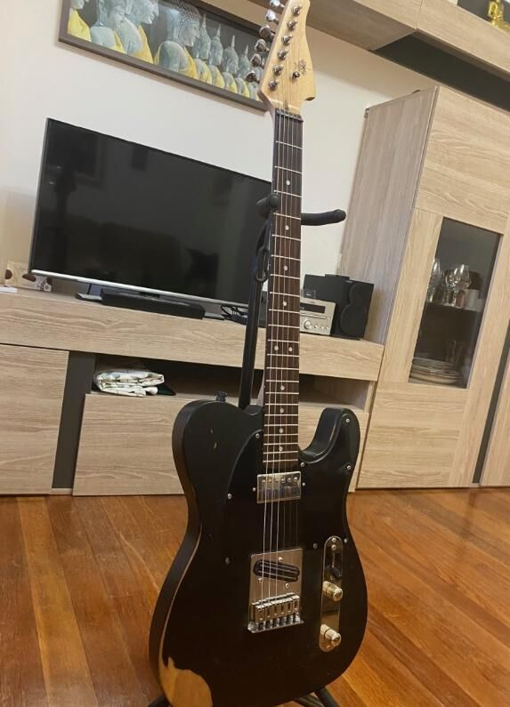 • Well-dried and resonant alder body, not too heavy. It is not a Chinese model. It comes from a store in Canada. It was already finished in relic style, with very little paint. Very nice vintage look.
