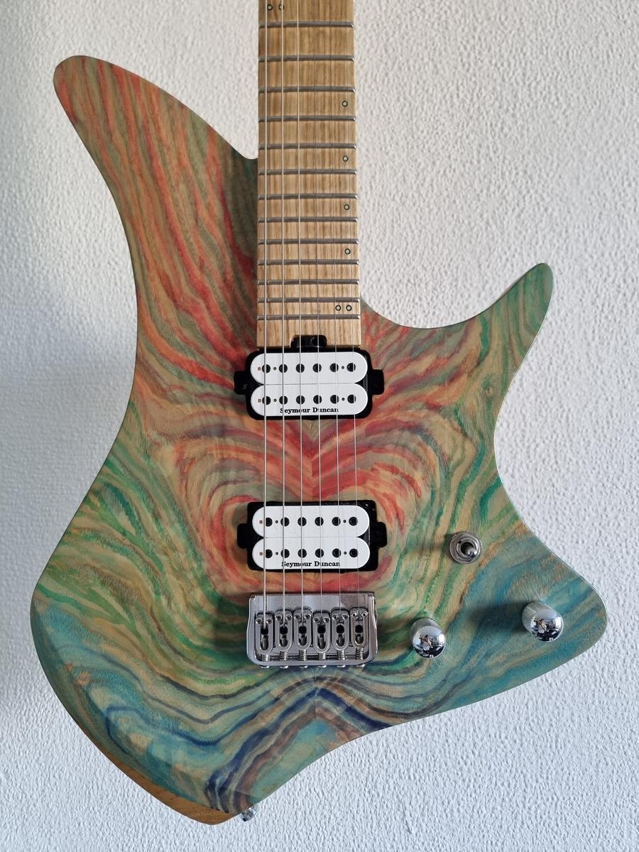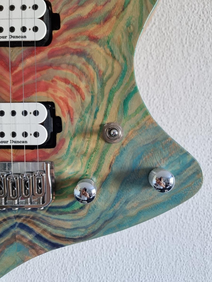 Electric guitar handmade by myself in the Occitanie region, it is a modern guitar that shines with its versatility.