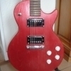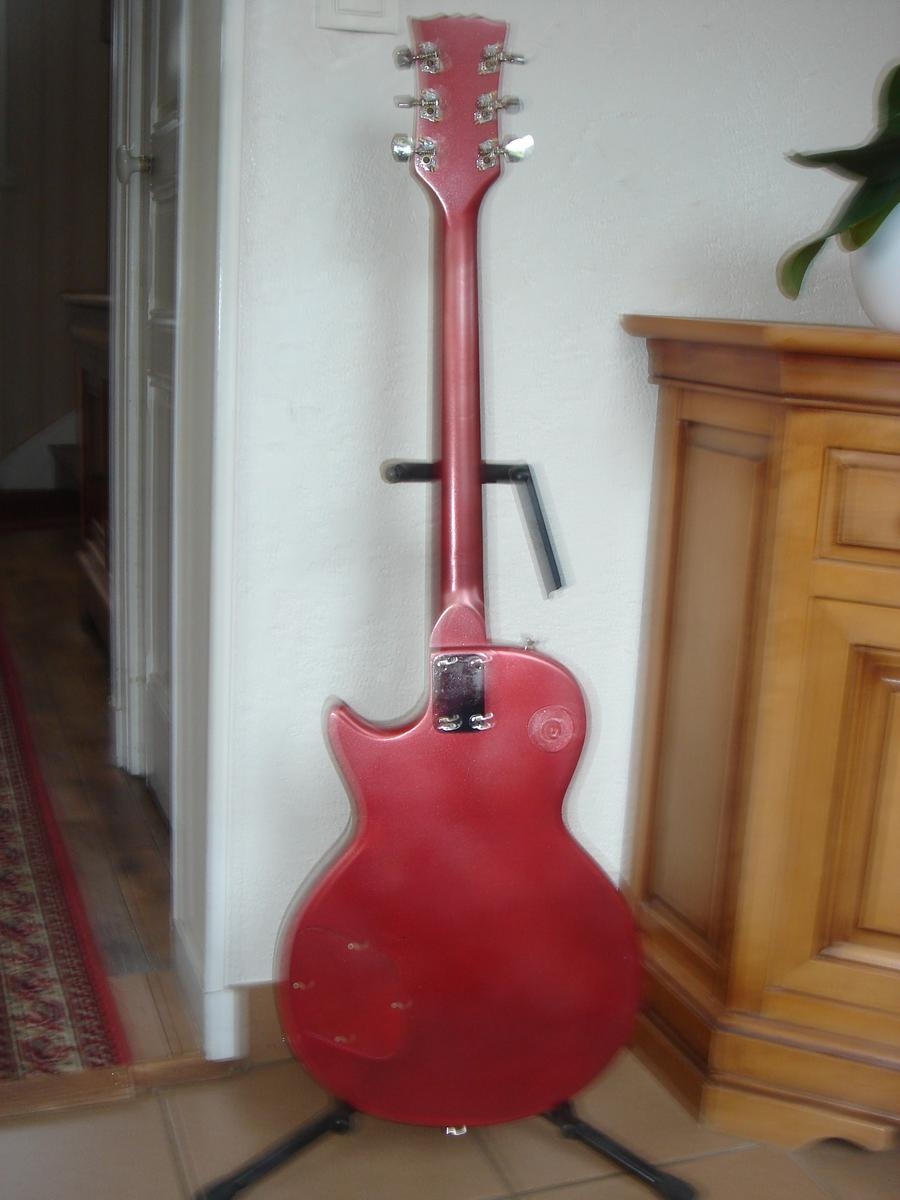 For sale: Elsay guitar, one-of-a-kind model. Satin red finish. Maple neck, rosewood fretboard. Volume and tone controls on each pickup. Shipping available.