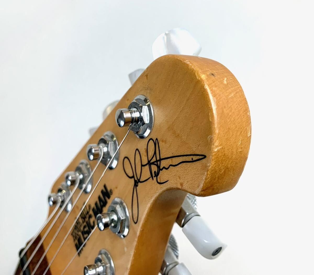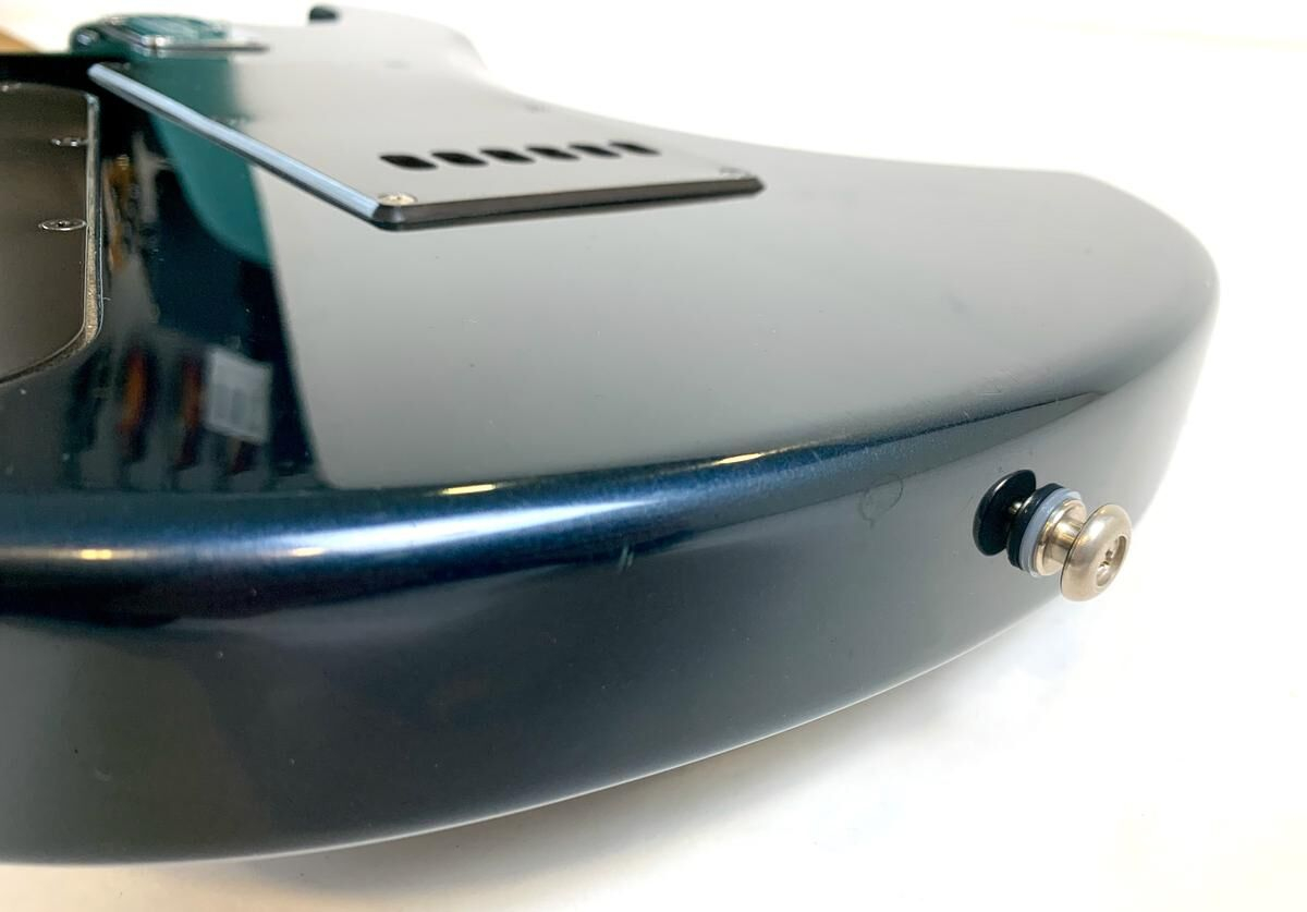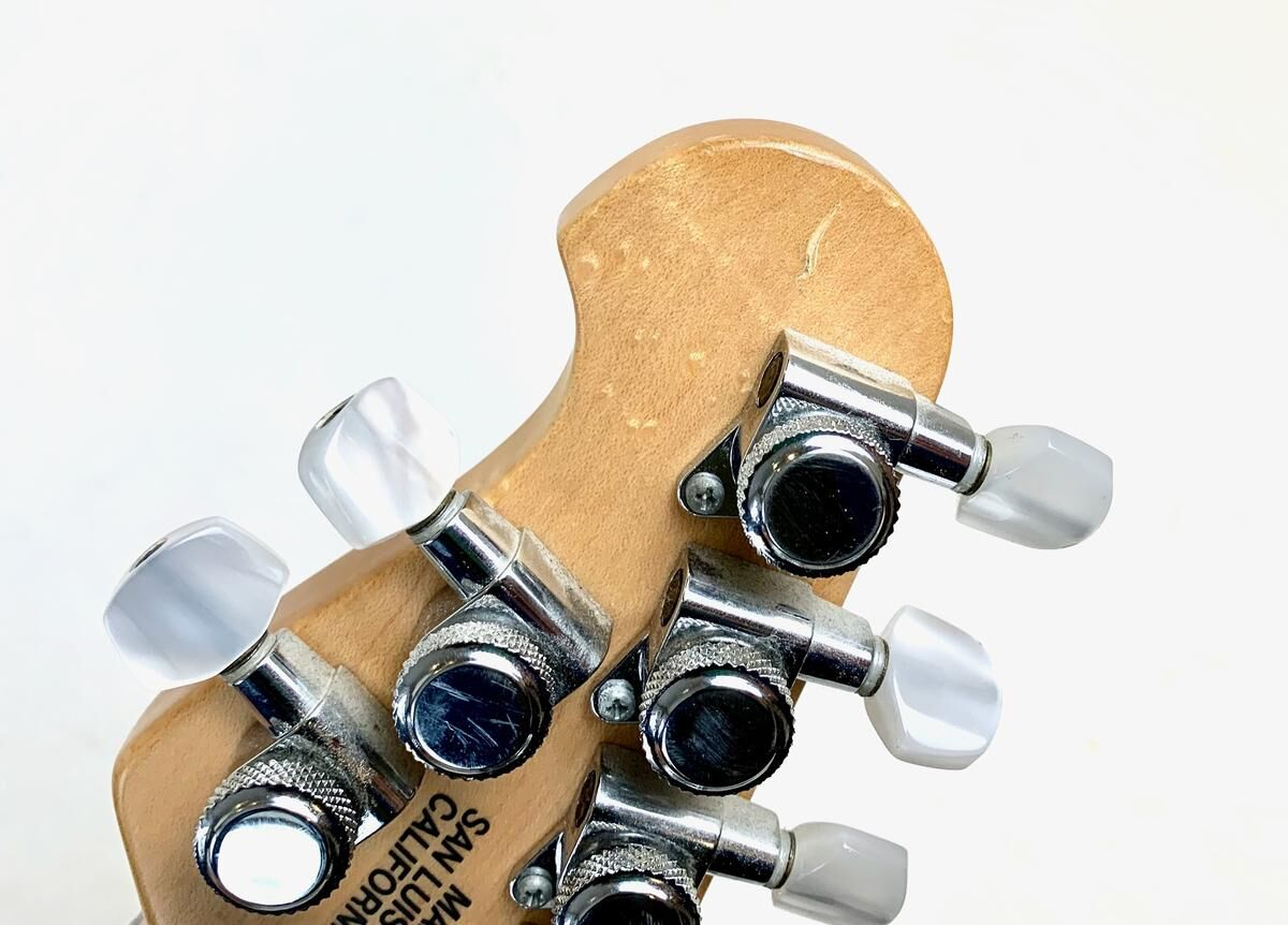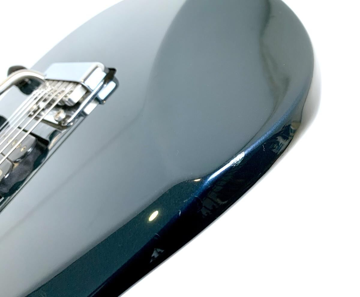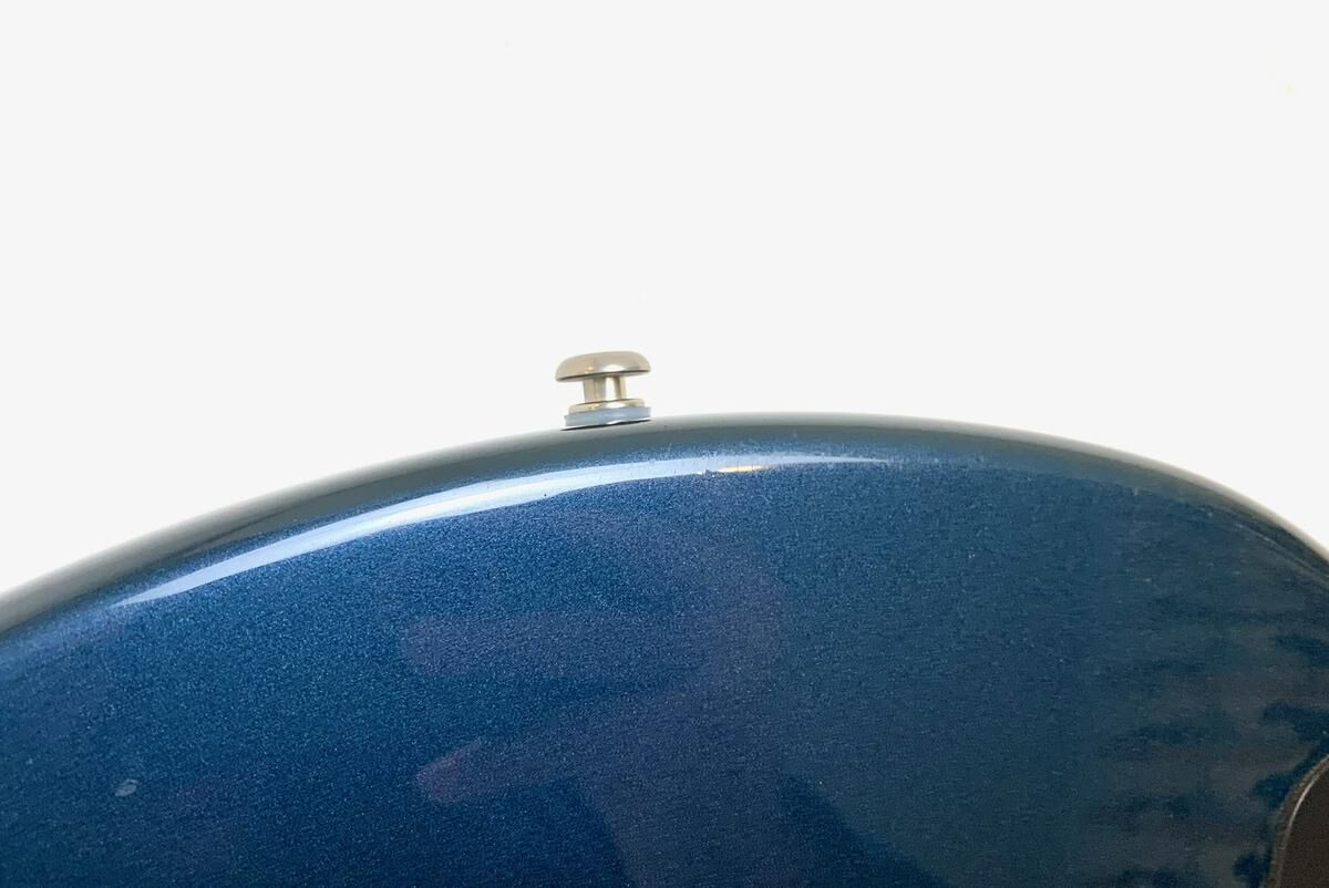 Cette MusicMan signature Petrucci (Dream Theater) est dotée de DiMarzio : des dérivés du AirNorton en position manche et du D Sonic en chevalet. De couleur Carbon Blue Pearl, son manche en érable se dote d'une touche en palissandre avec 24 frettes. Vendue dans son étui d’origine.