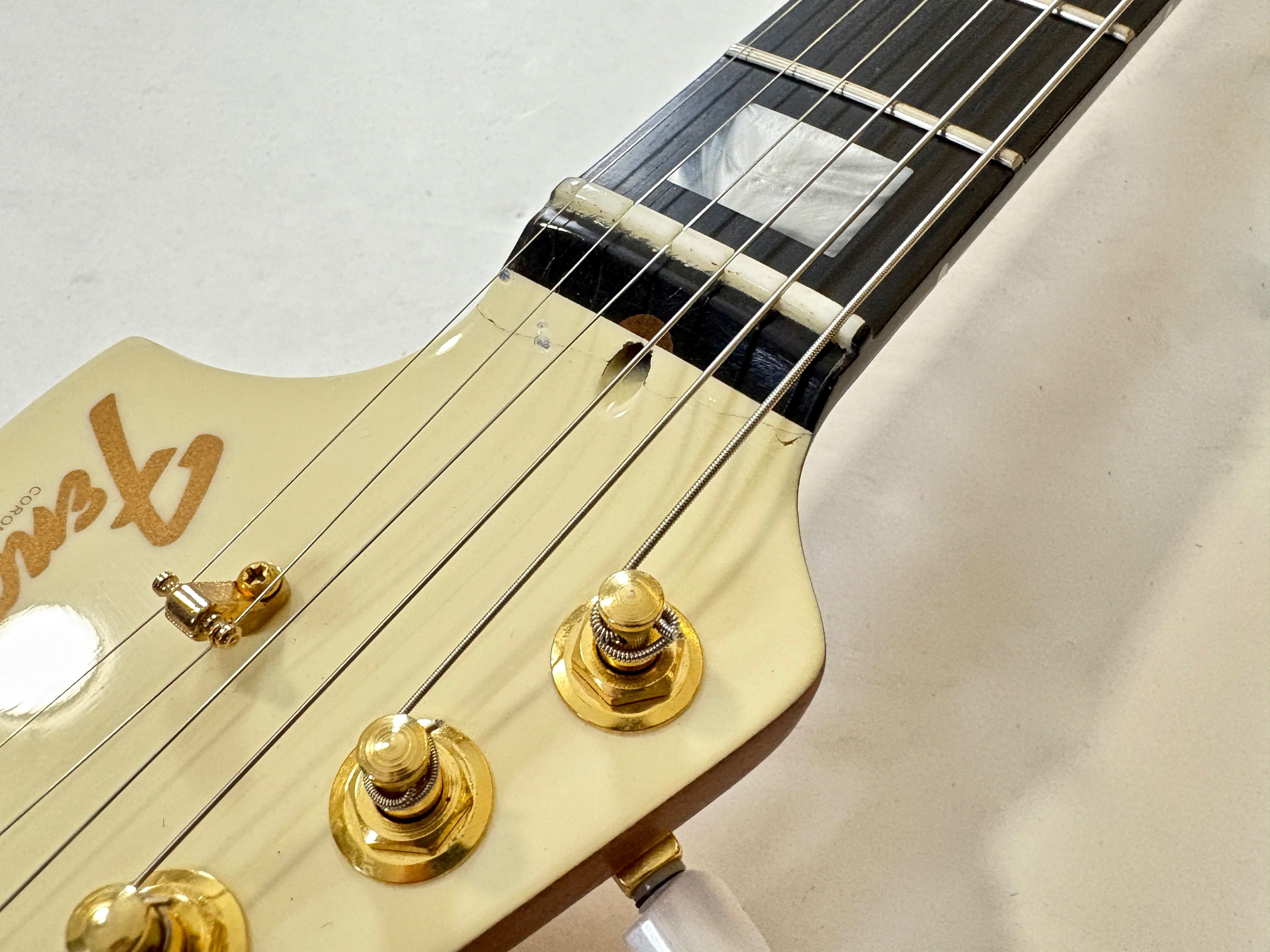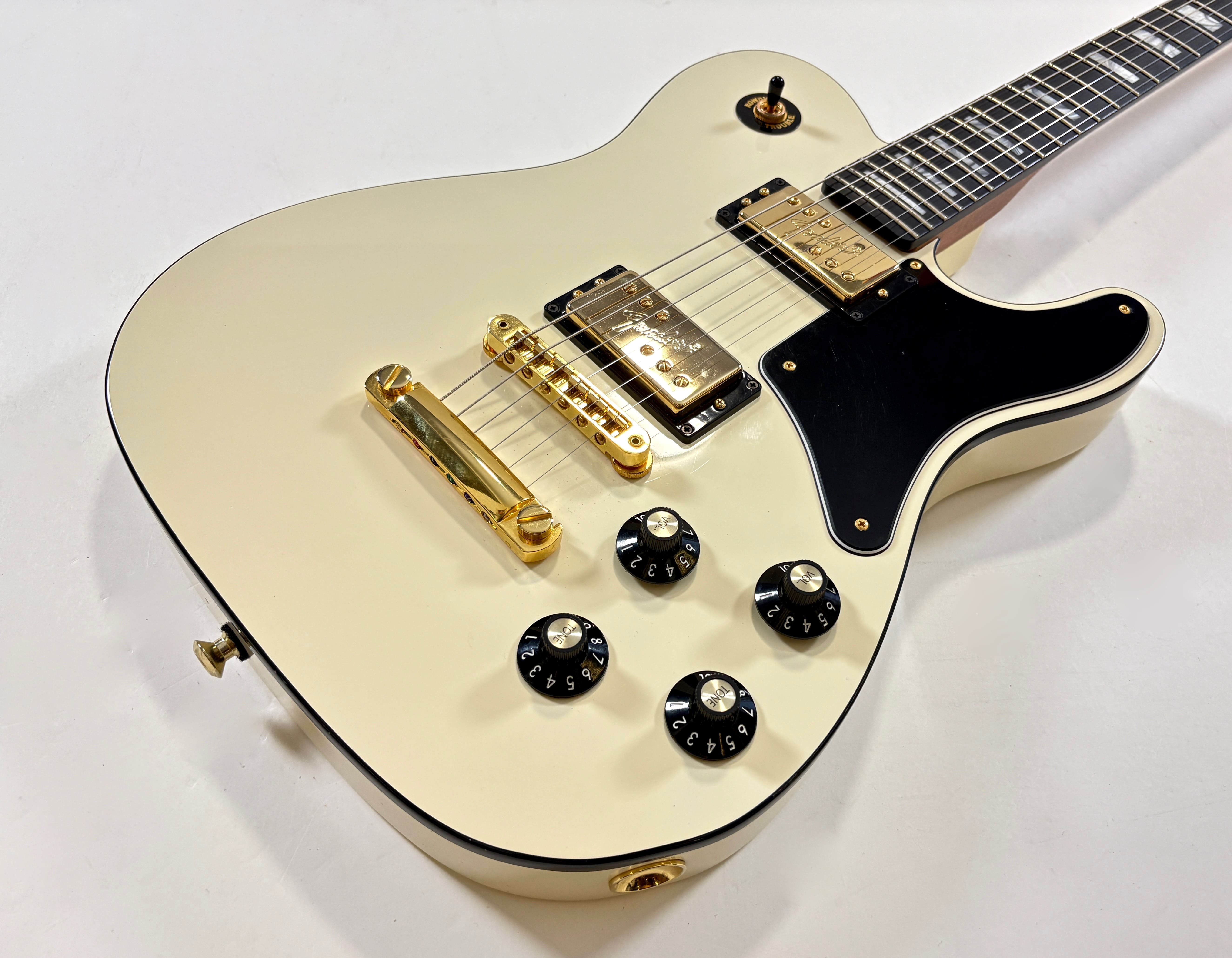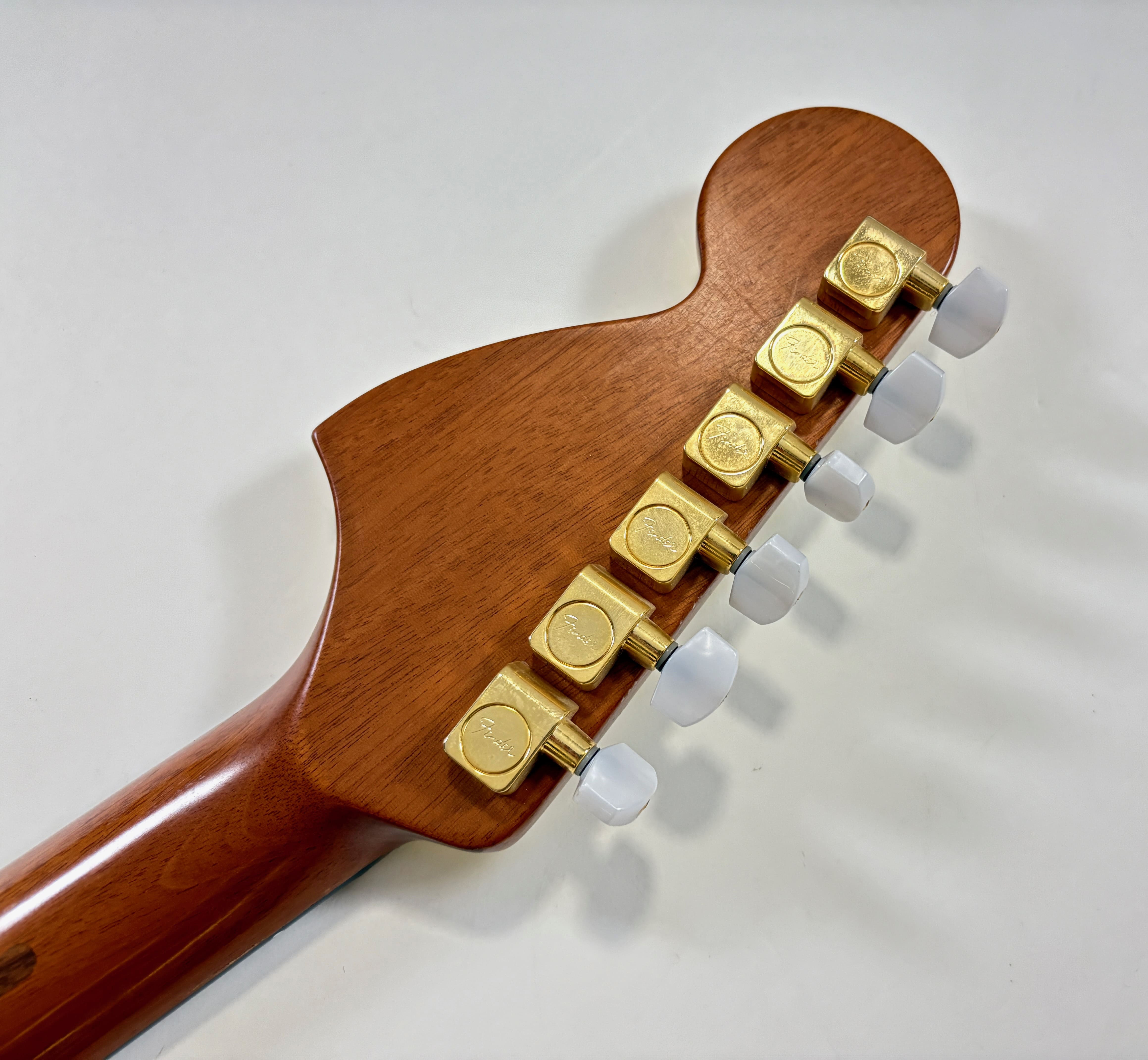 The Troublemaker takes inspiration from the Telecaster Deluxe but swaps the Wide Range pickups for more traditional humbuckers. It also leans into competing with Gibson, featuring a mahogany body and neck, complemented by an ebony fingerboard. The color, gold hardware, and choice of tonewoods make this Fender stand out from the crowd. Note a finish crack at the headstock. This USA-made version comes with its original case, which is also distinctive for its color. More pix and details upon request. Shipping worldwide available.