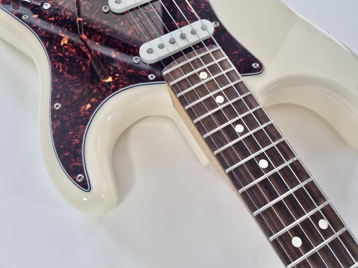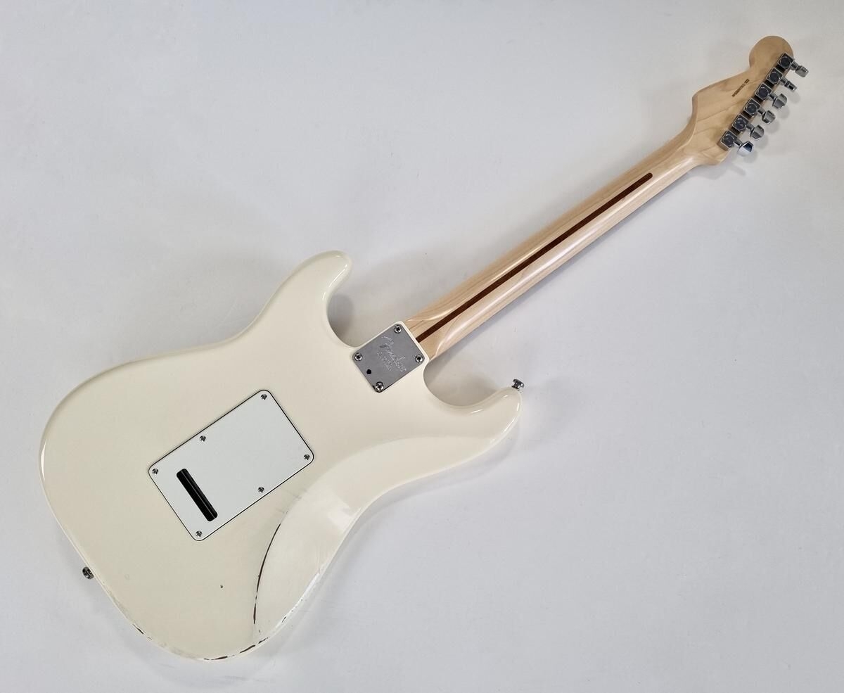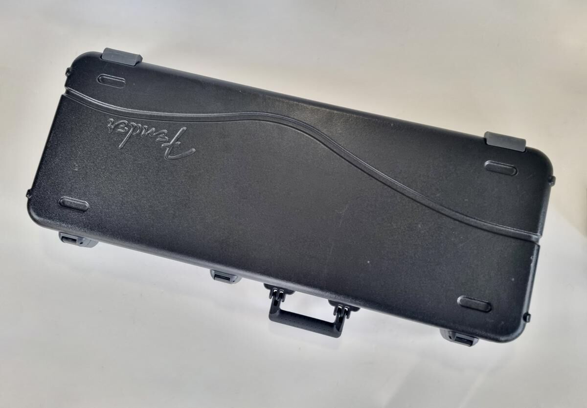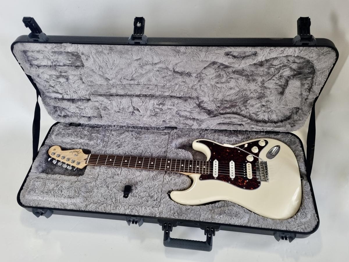 L’American Professional prend la succession de l’American Standard. Le manche au profil moderne deep C (entre C et U) avec touche palissandre offre 22 cases au lieu de 21. Sa configuration micro HSS avec un humbucker Shawbucker en chevalet la rend particulièrement polyvalente ! Les micros simples ont été remplacés par des modèles type vintage. Celle-ci a été relicée, vendue dans son étui d’origine.