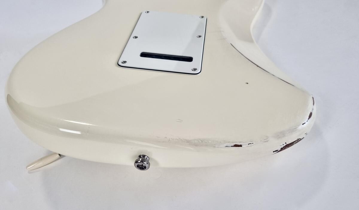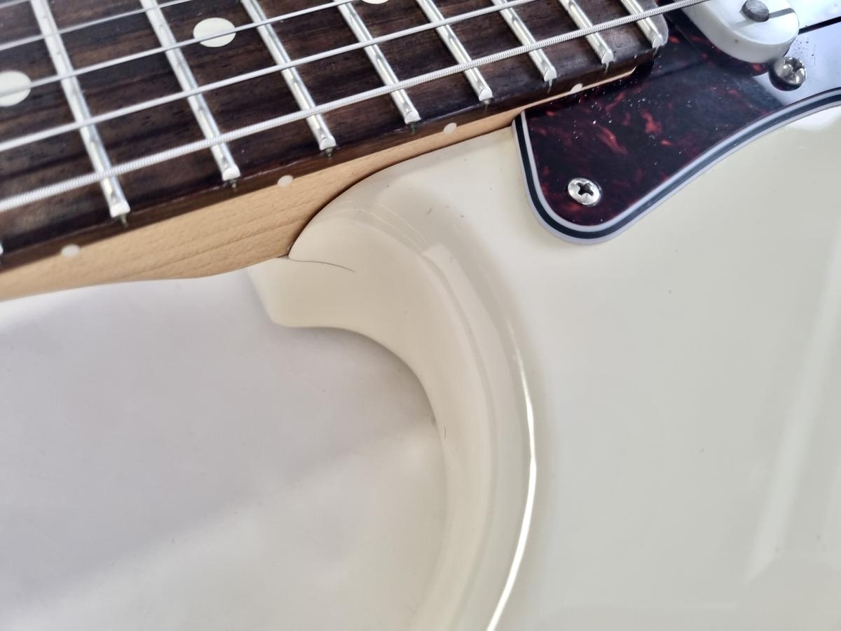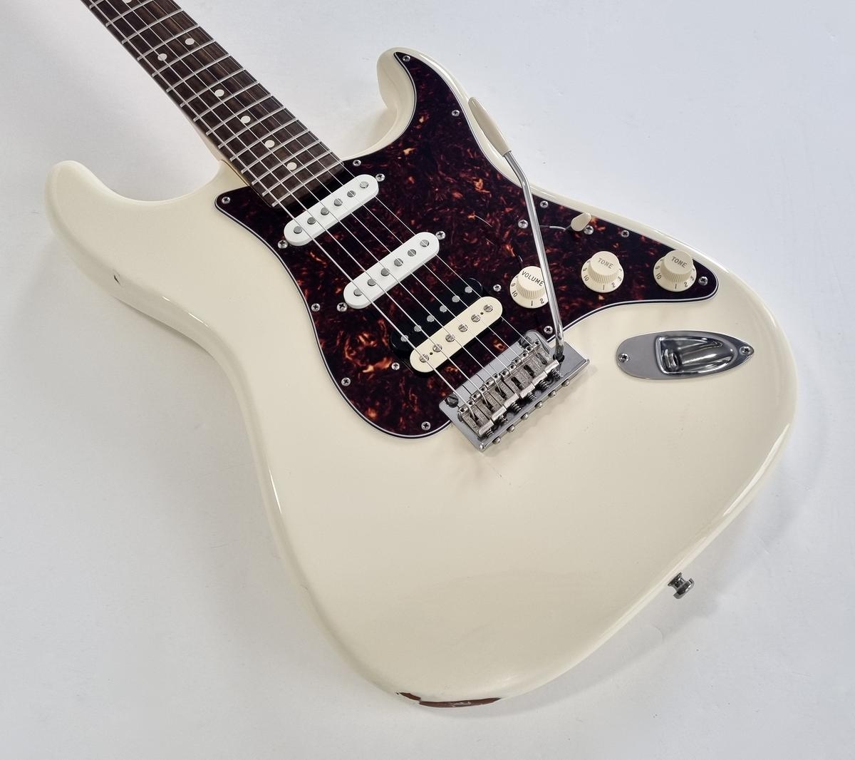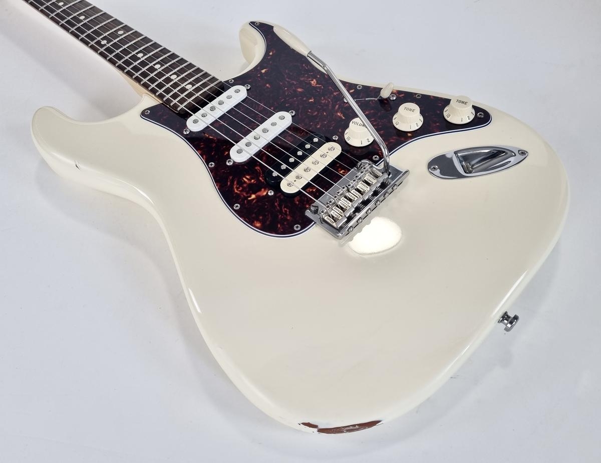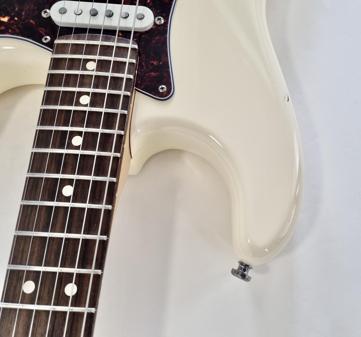 L’American Professional prend la succession de l’American Standard. Le manche au profil moderne deep C (entre C et U) avec touche palissandre offre 22 cases au lieu de 21. Sa configuration micro HSS avec un humbucker Shawbucker en chevalet la rend particulièrement polyvalente ! Les micros simples ont été remplacés par des modèles type vintage. Celle-ci a été relicée, vendue dans son étui d’origine.