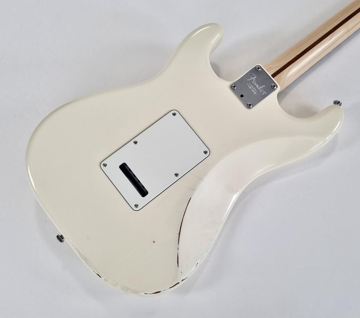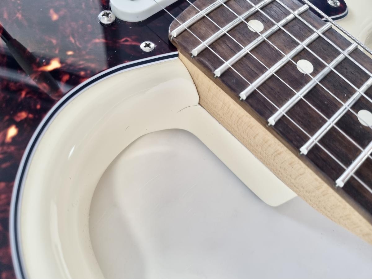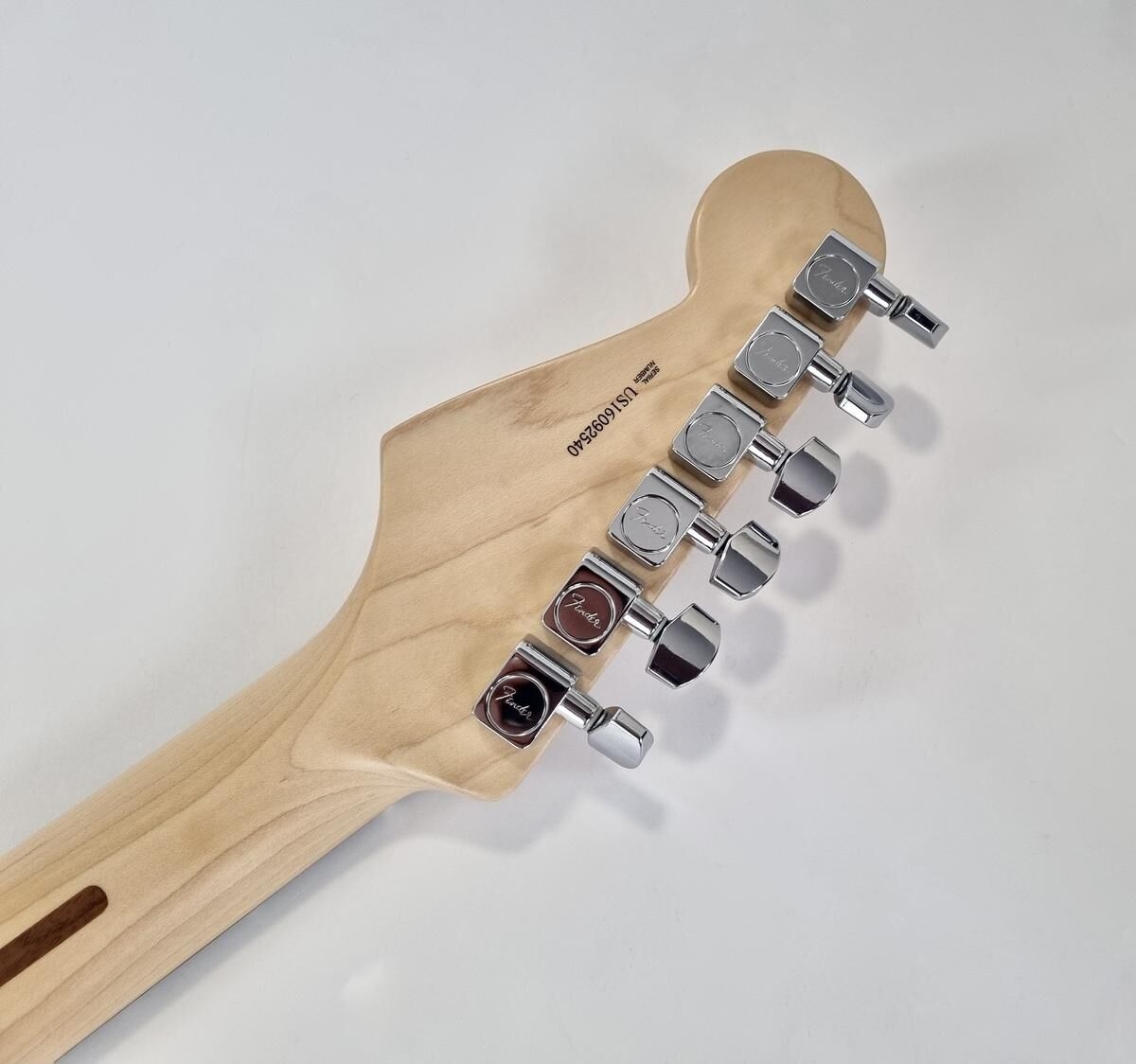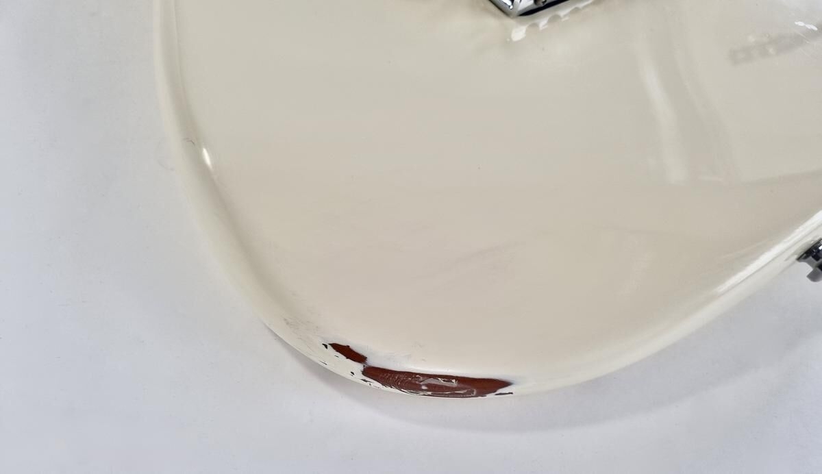 L’American Professional prend la succession de l’American Standard. Le manche au profil moderne deep C (entre C et U) avec touche palissandre offre 22 cases au lieu de 21. Sa configuration micro HSS avec un humbucker Shawbucker en chevalet la rend particulièrement polyvalente ! Les micros simples ont été remplacés par des modèles type vintage. Celle-ci a été relicée, vendue dans son étui d’origine.