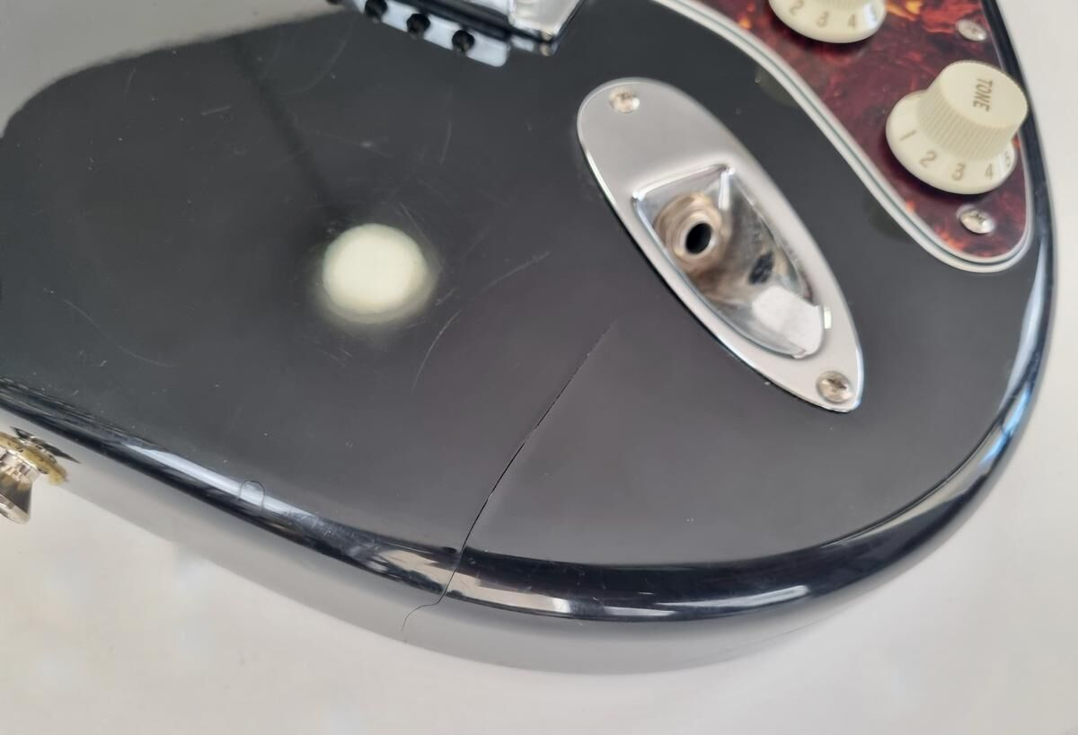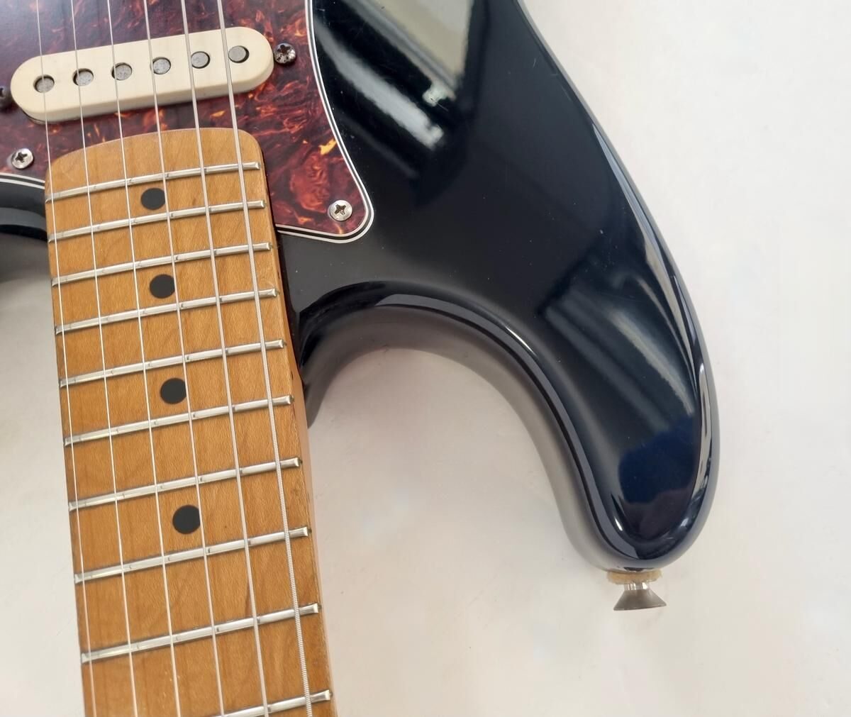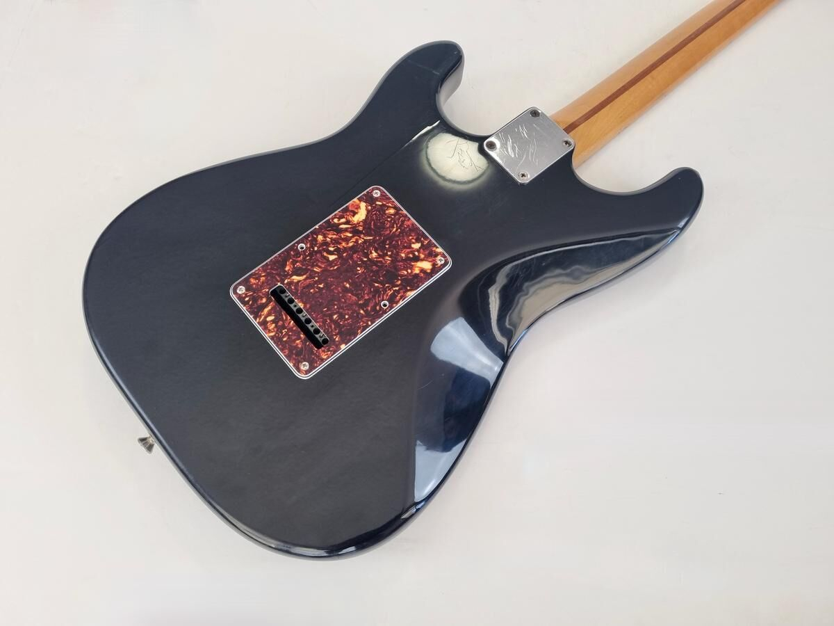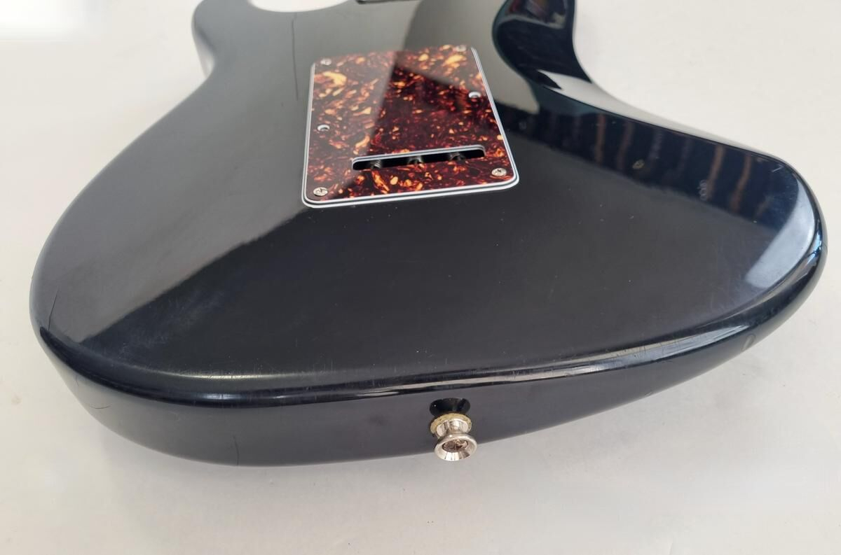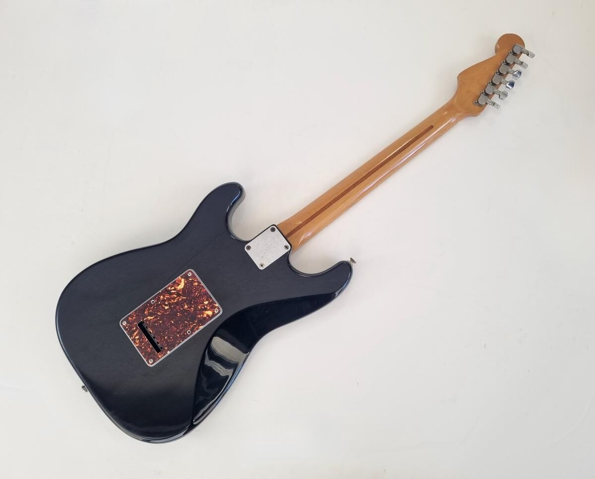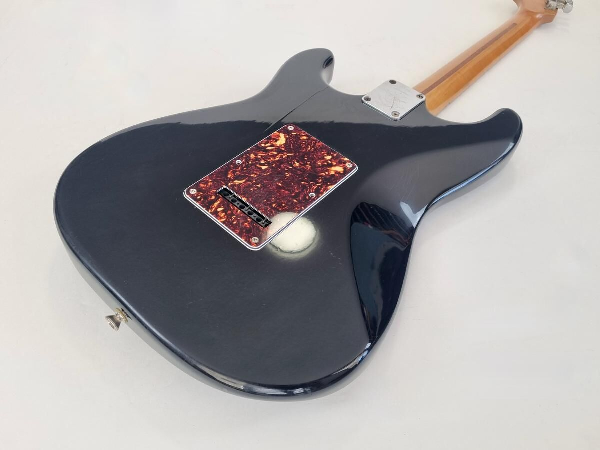 Un classique de la gamme Fender, manche modern C, radius de 9.5 pouces et touche érable, cette Strat est très confortable à jouer. Le pickguard tortoise combiné à la couleur noire lui donne un super look ! Elle a de nombreuse marques d'usage.