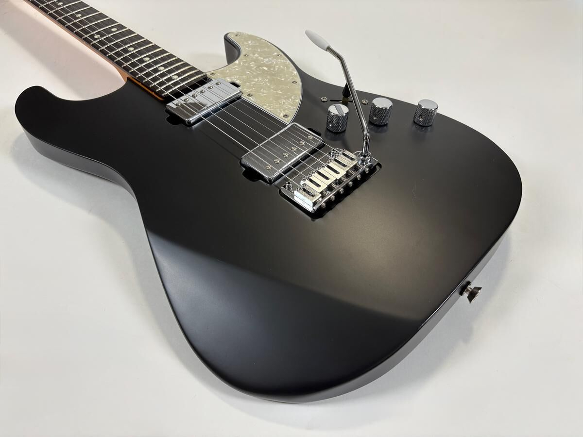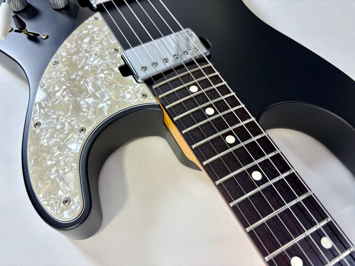 Look de Strat mais coeur de Gibson pour cette Elemental issue d’une série limitée ! En effet son corps en aulne accueille une paire de humbuckers Modern Modified I que l’on peut splitter grâce à un push/pull sur le second tone. Le manche qui évolue du profil C au D a une touche en palissandre au radius de 12 pouces. Comme d’habitude on retrouve la qualité de lutherie et l’assemblage sans faille typiquement nippons. Celle-ci est d’origine et en très bon état.