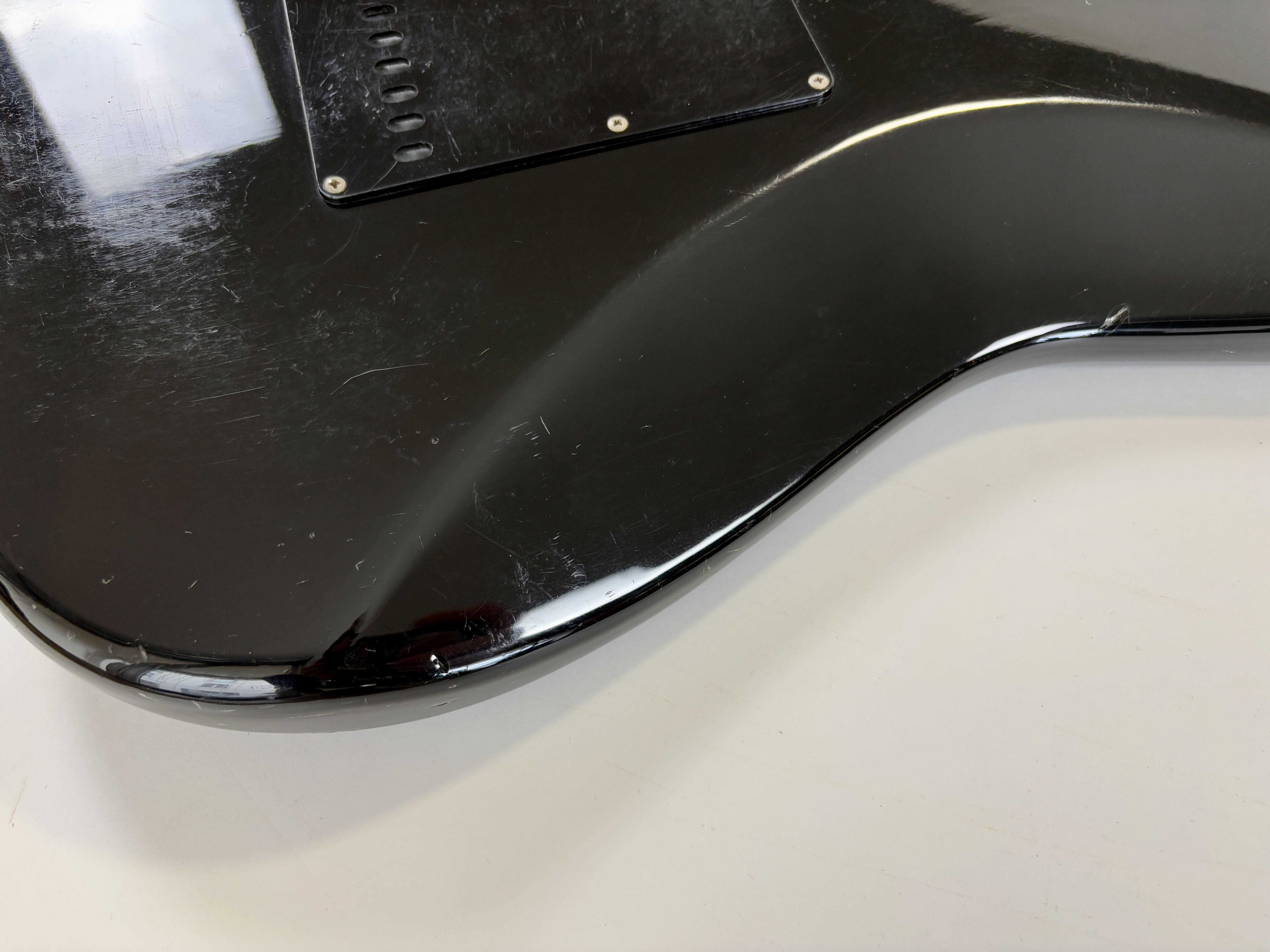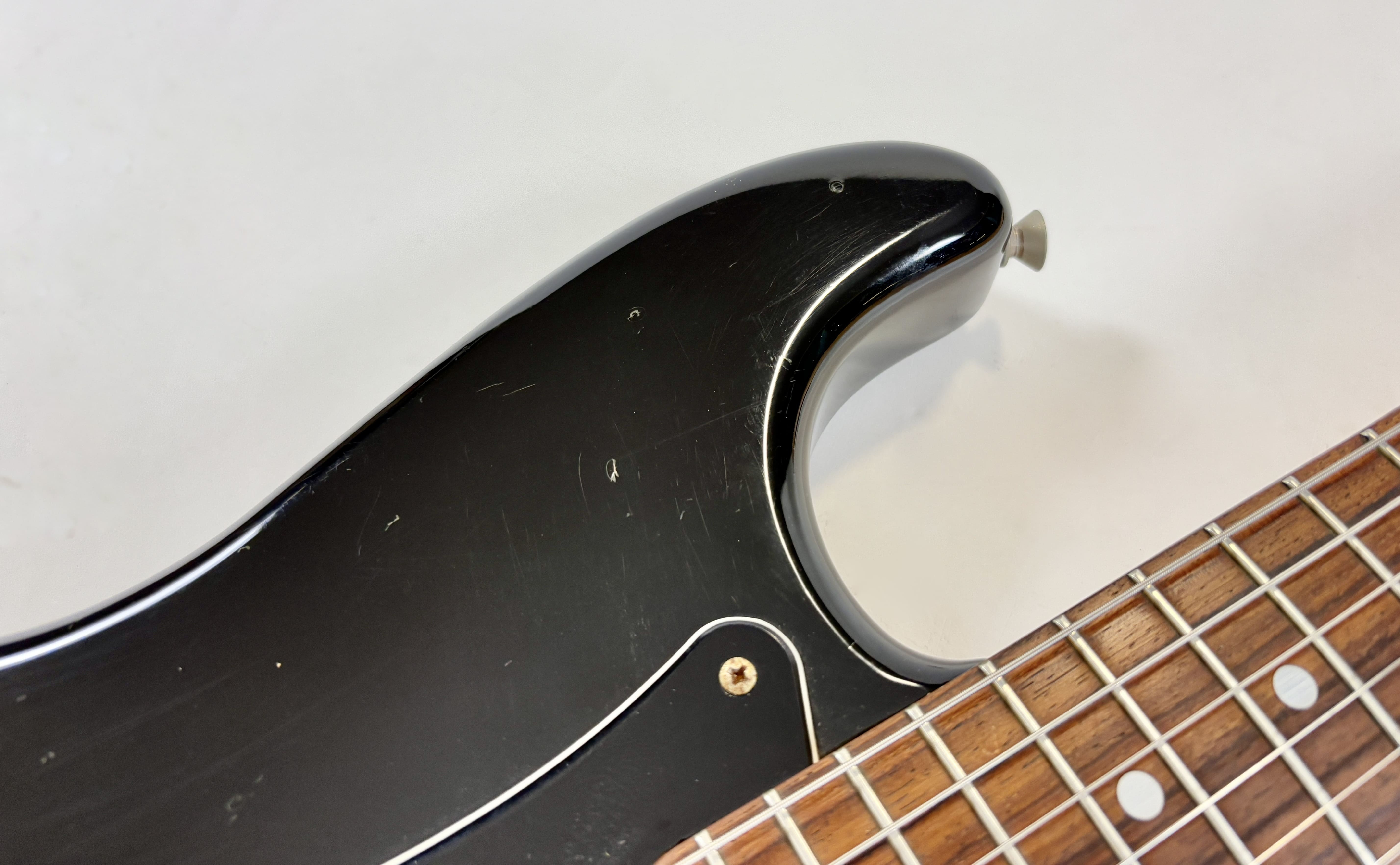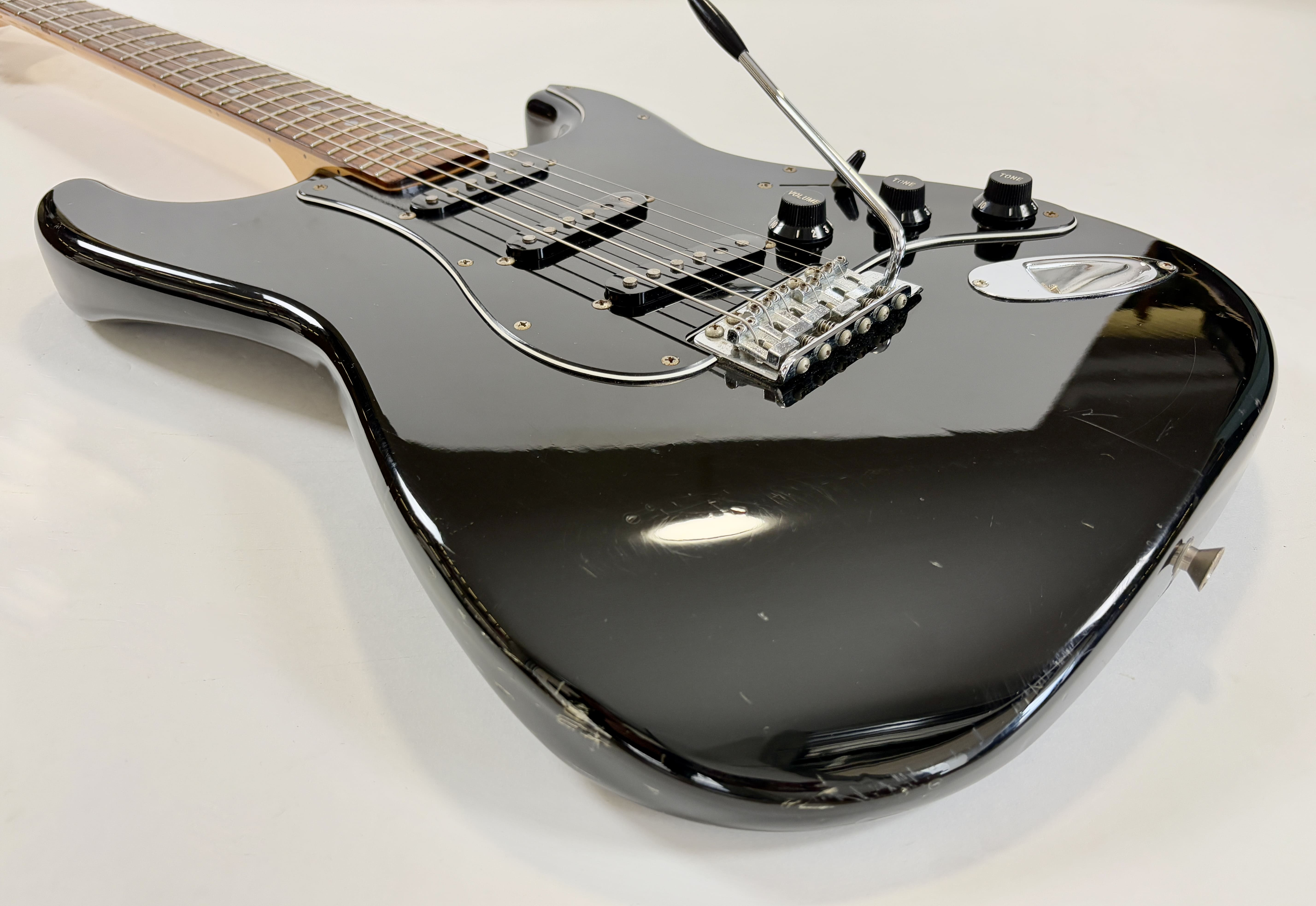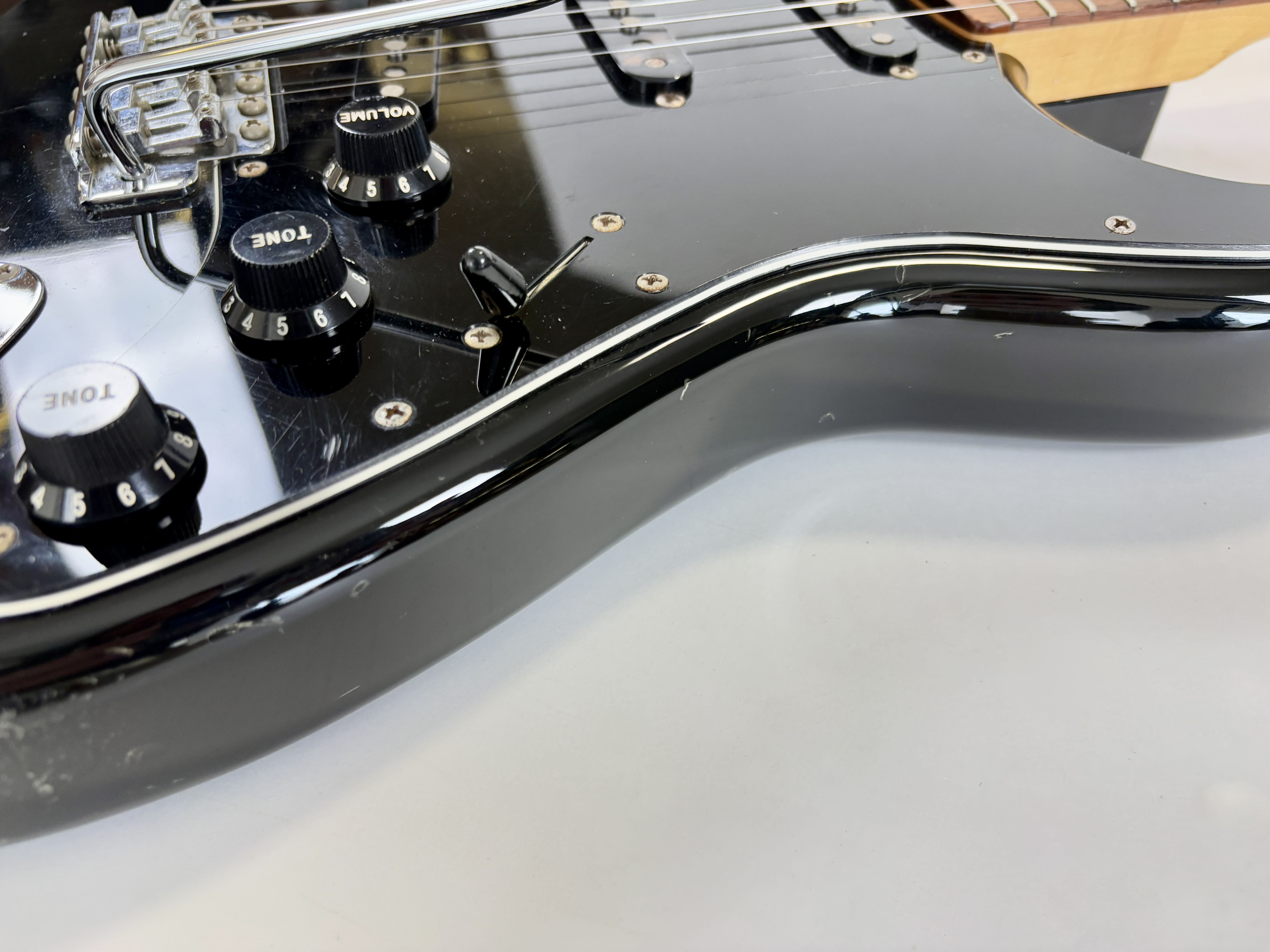 Big-headstock Fender fans, this Strat is for you! It features the classic CBS-era Strat characteristics: three-bolt neck joint, black pickup covers, bullet truss rod, etc. This is a Crafted in Japan model produced between 2006 and 2008, sporting an all-black look and in good condition for its 20 years of age. As usual, it offers the typically flawless Japanese craftsmanship and assembly. This ST-72 model is fitted with American ‘black bottom’ pickups. More pix and details upon request. Shipping worldwide available.