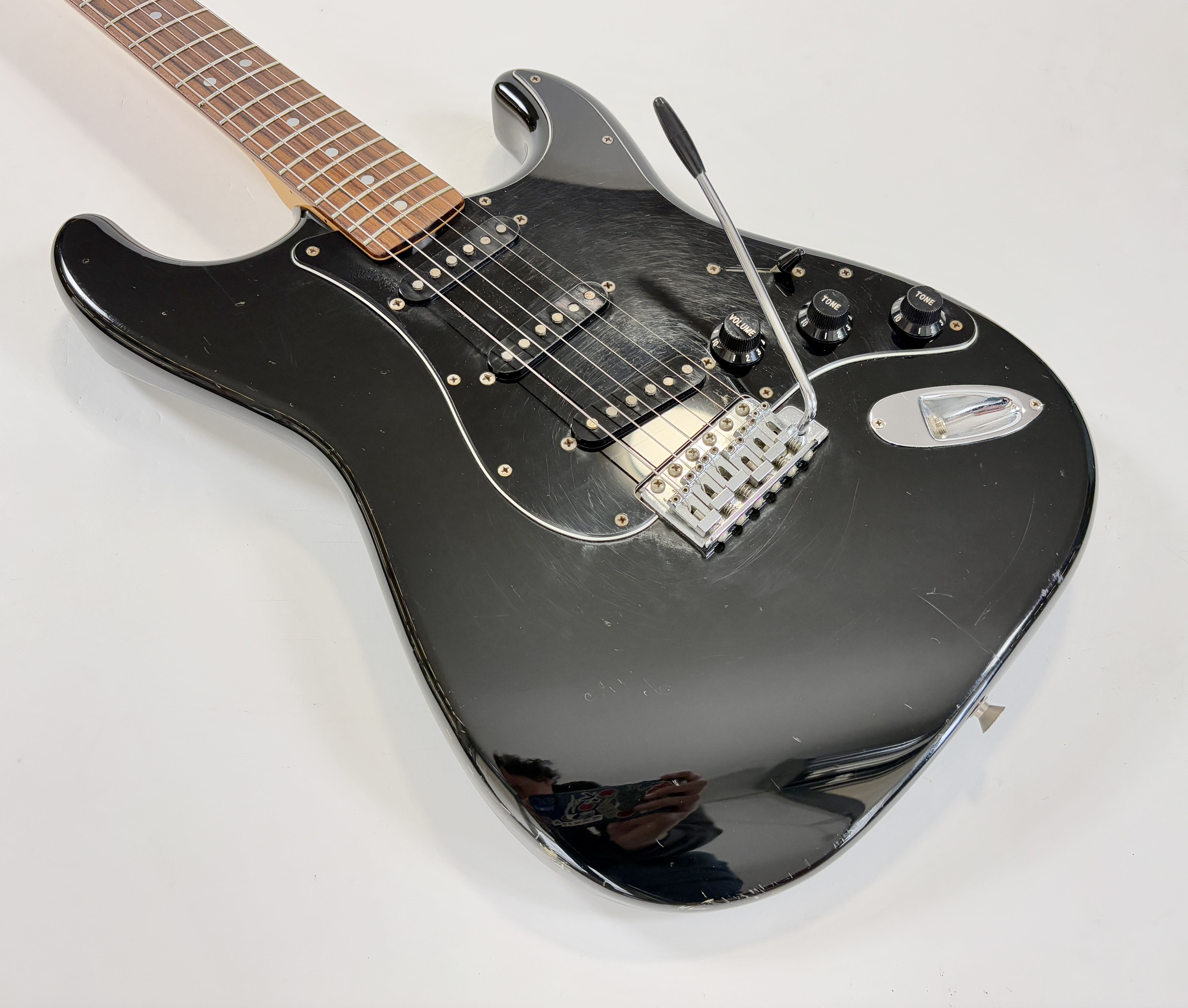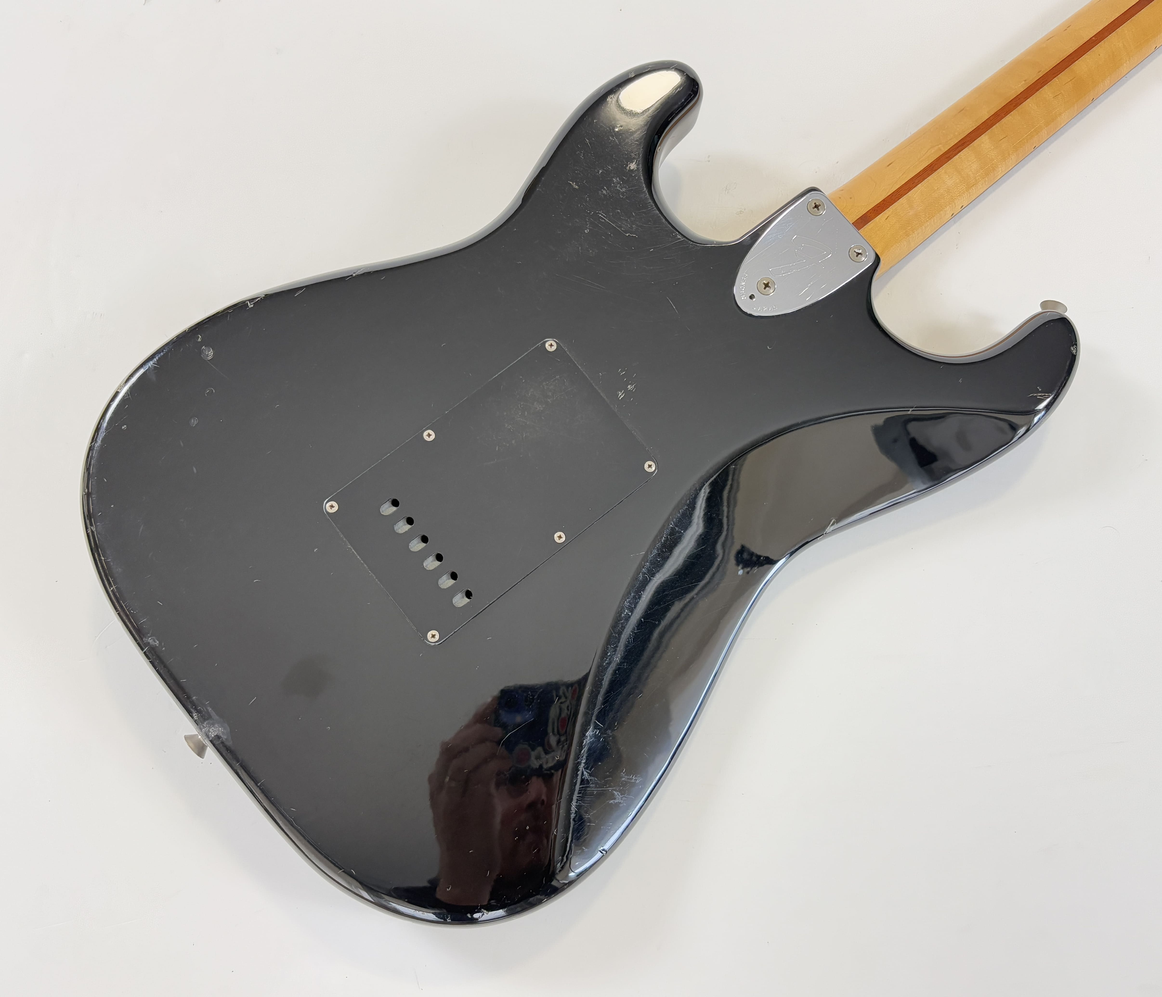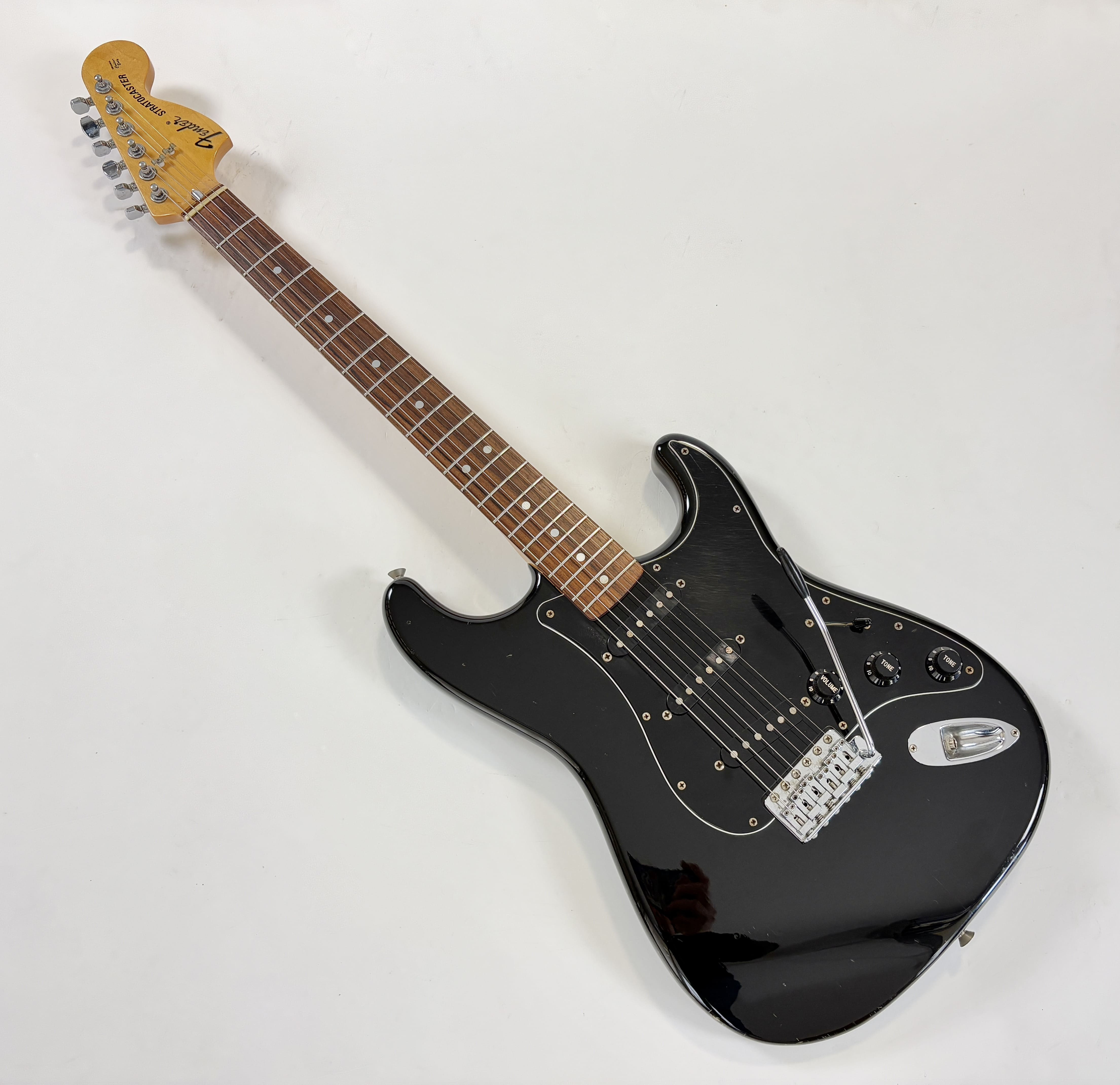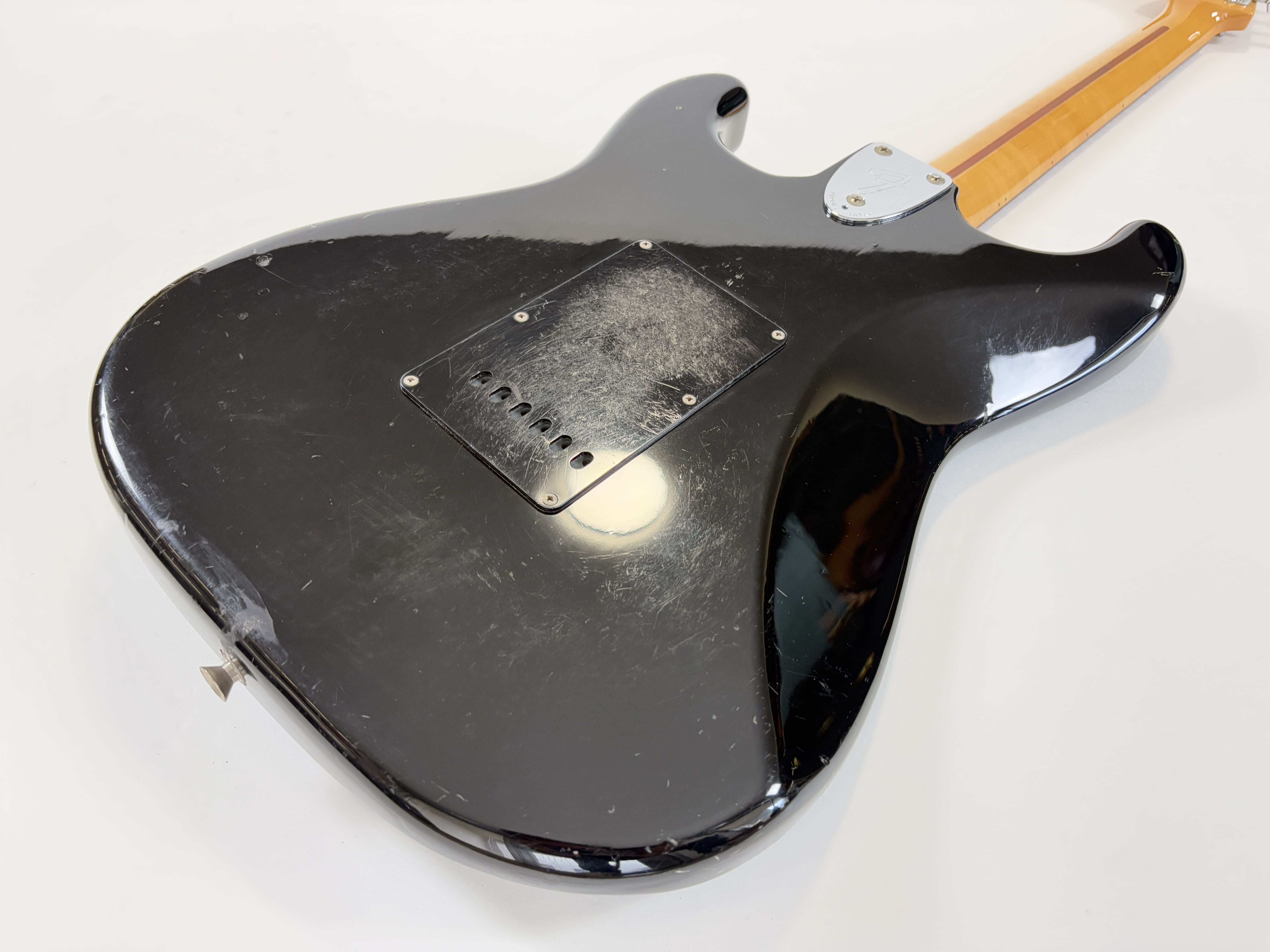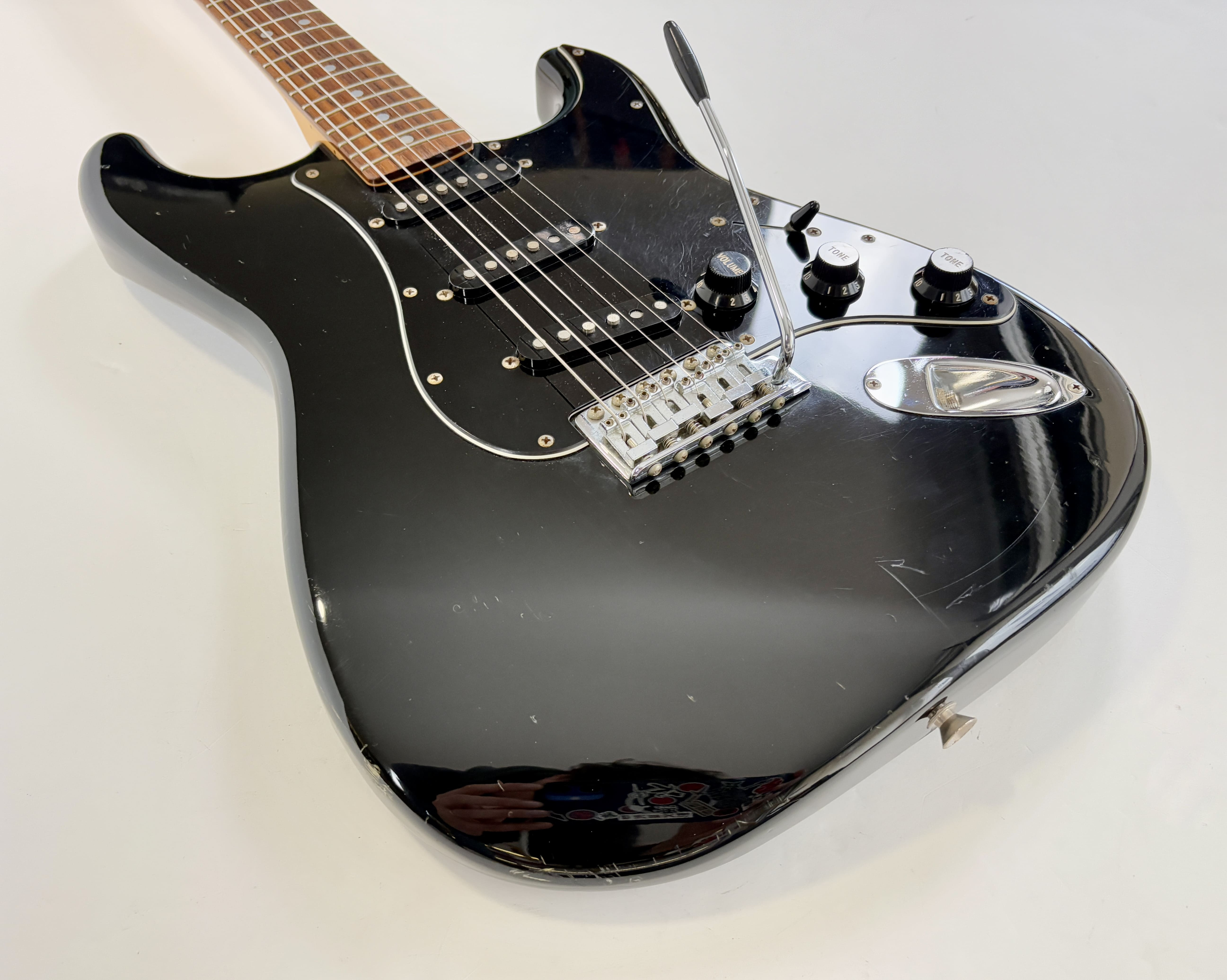 Big-headstock Fender fans, this Strat is for you! It features the classic CBS-era Strat characteristics: three-bolt neck joint, black pickup covers, bullet truss rod, etc. This is a Crafted in Japan model produced between 2006 and 2008, sporting an all-black look and in good condition for its 20 years of age. As usual, it offers the typically flawless Japanese craftsmanship and assembly. This ST-72 model is fitted with American ‘black bottom’ pickups. More pix and details upon request. Shipping worldwide available.
