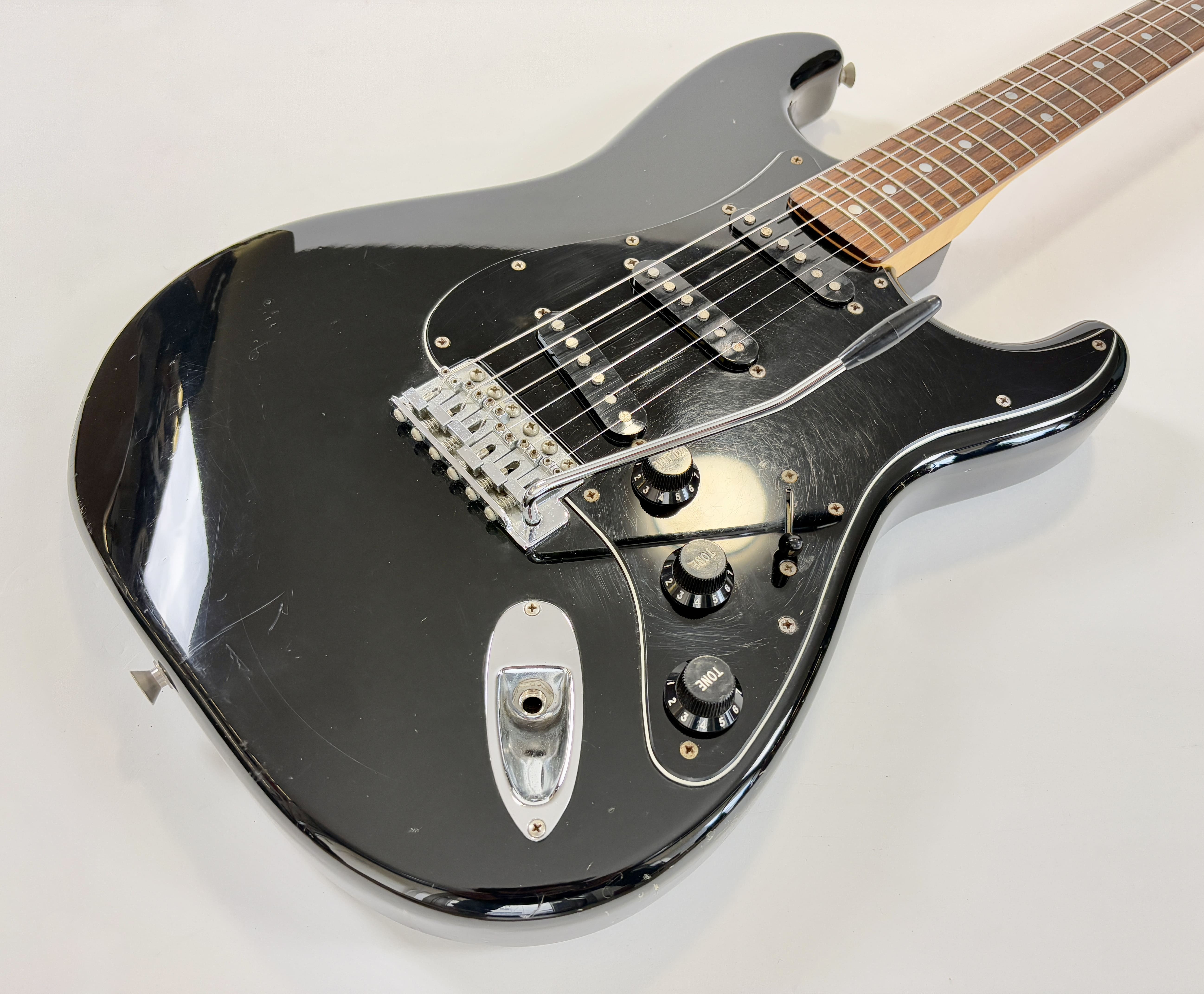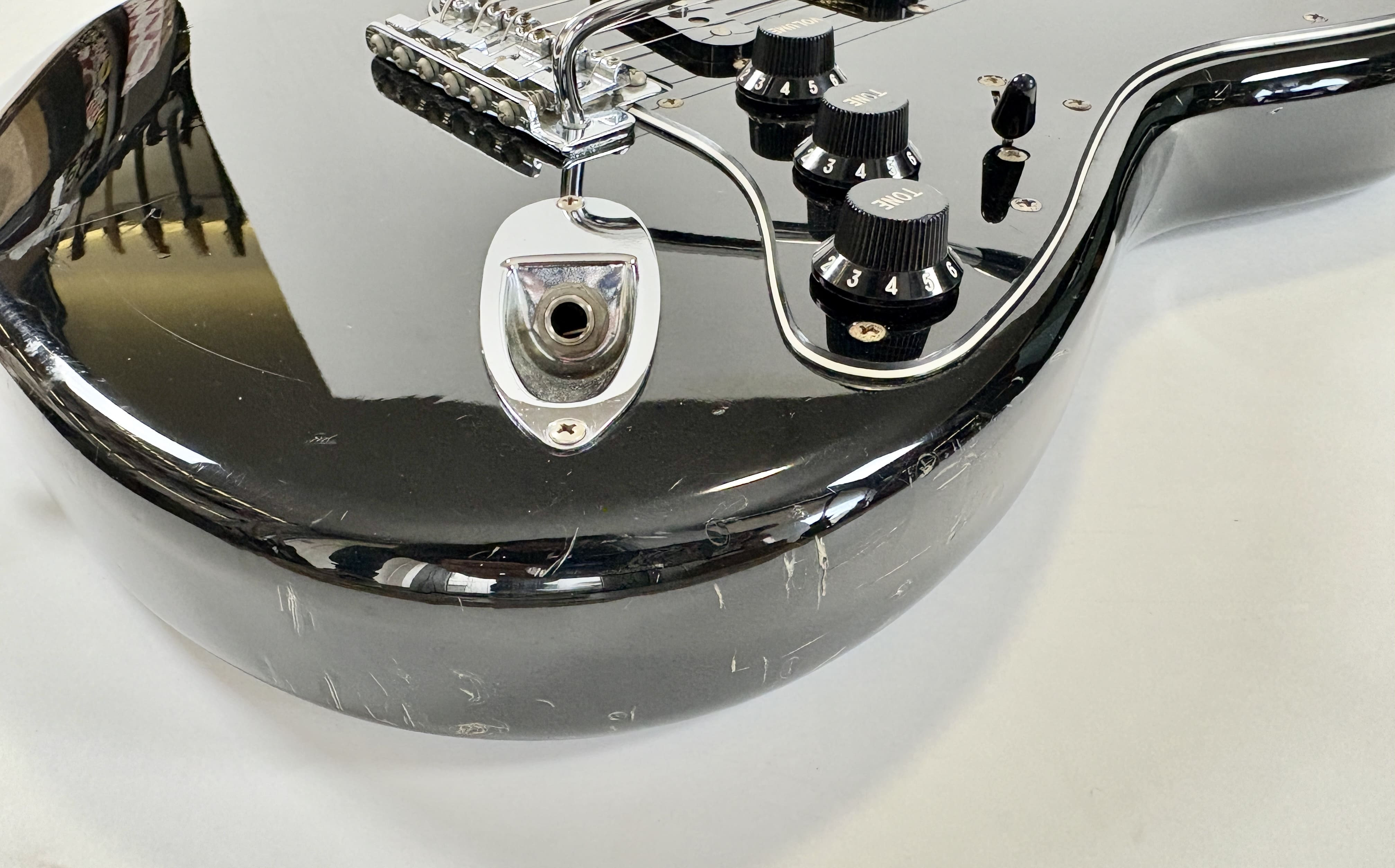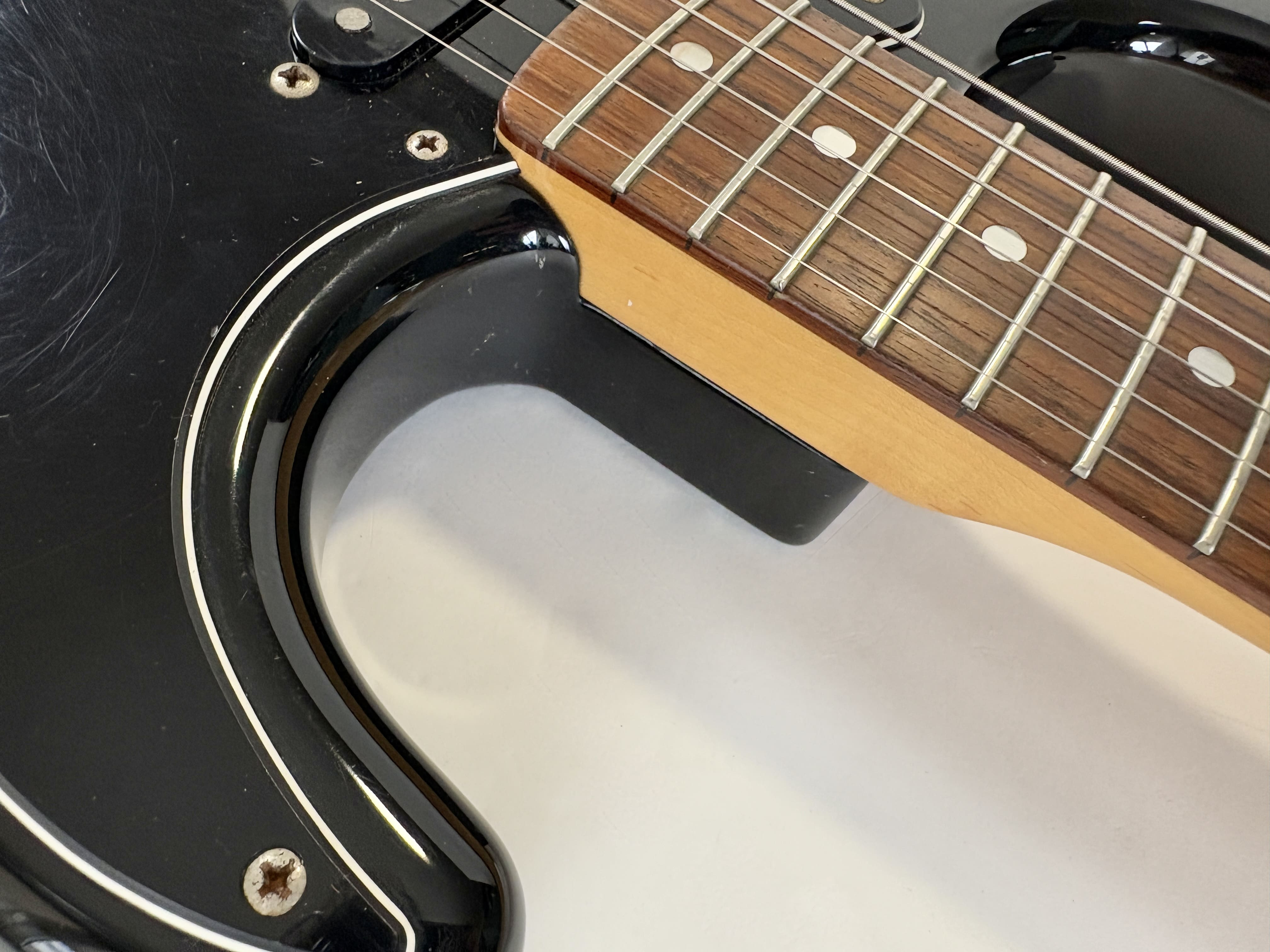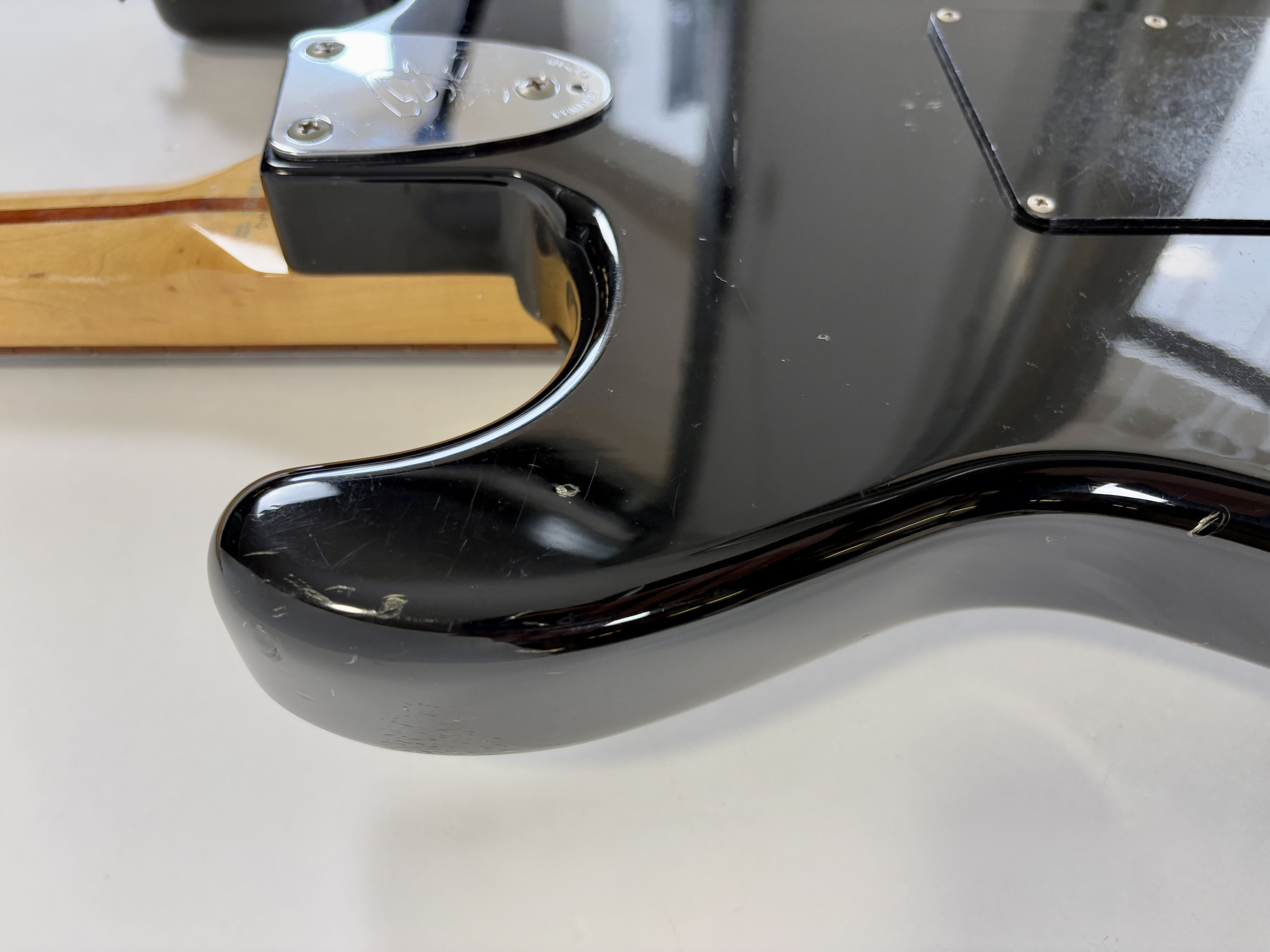 Big-headstock Fender fans, this Strat is for you! It features the classic CBS-era Strat characteristics: three-bolt neck joint, black pickup covers, bullet truss rod, etc. This is a Crafted in Japan model produced between 2006 and 2008, sporting an all-black look and in good condition for its 20 years of age. As usual, it offers the typically flawless Japanese craftsmanship and assembly. This ST-72 model is fitted with American ‘black bottom’ pickups. More pix and details upon request. Shipping worldwide available.