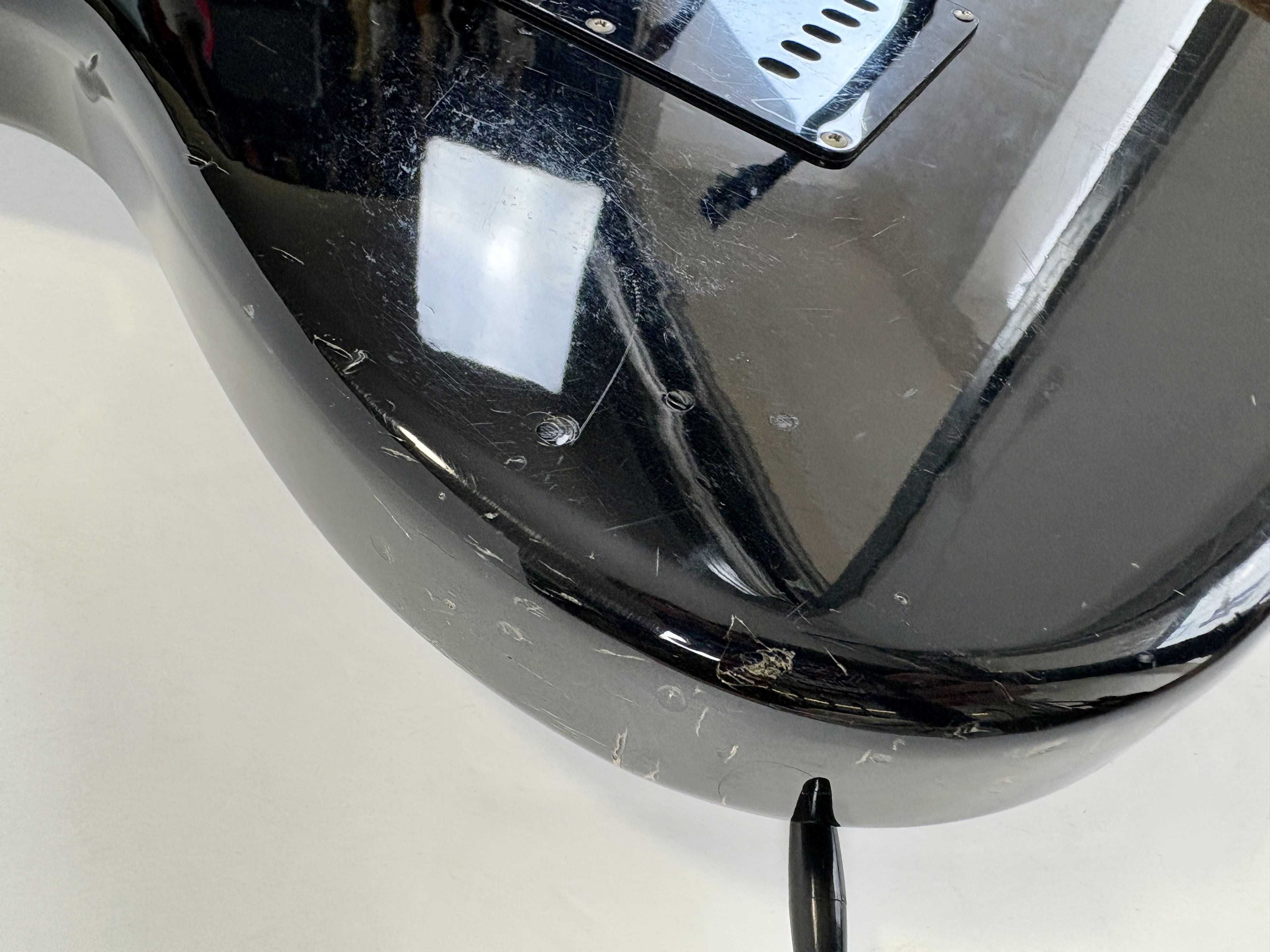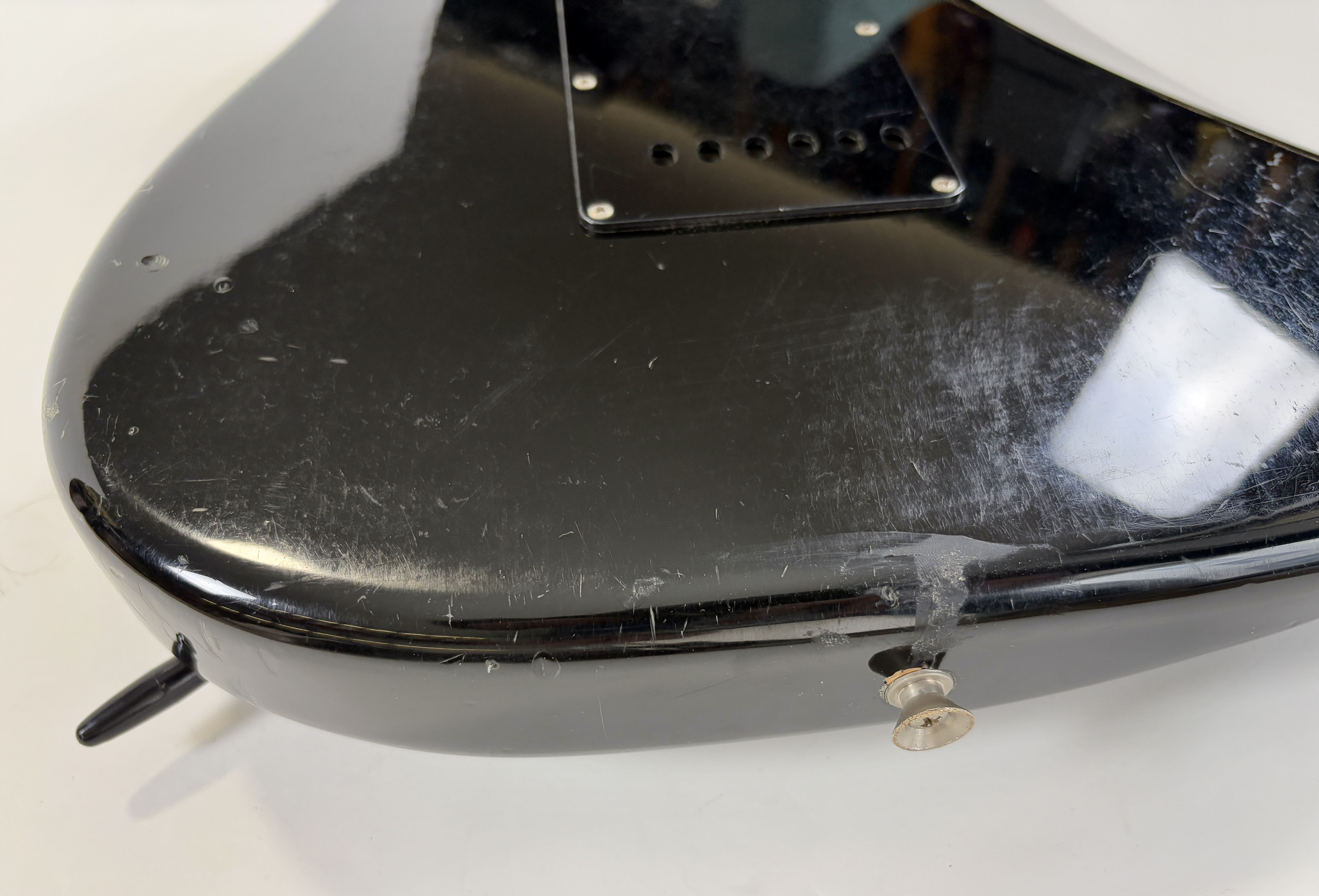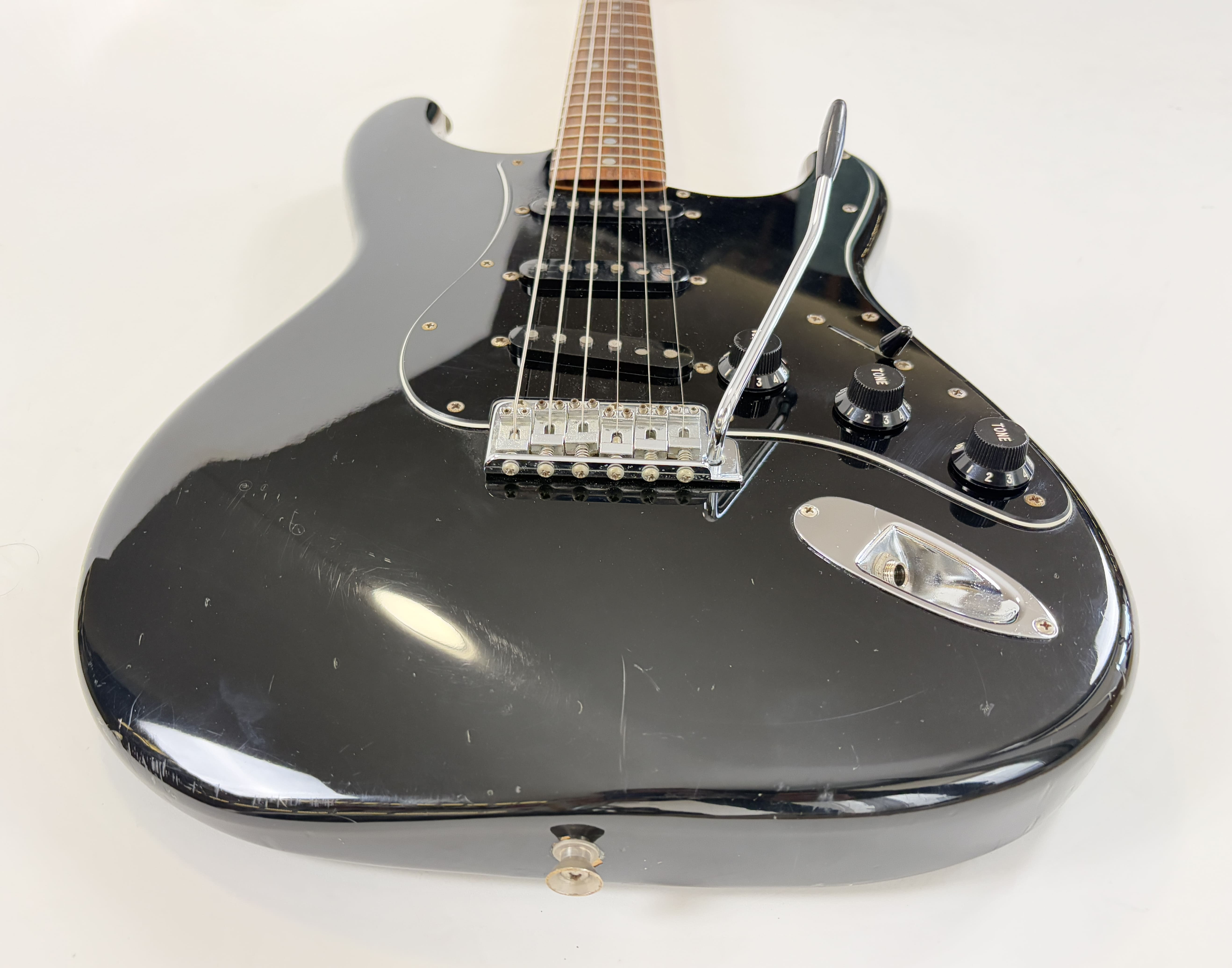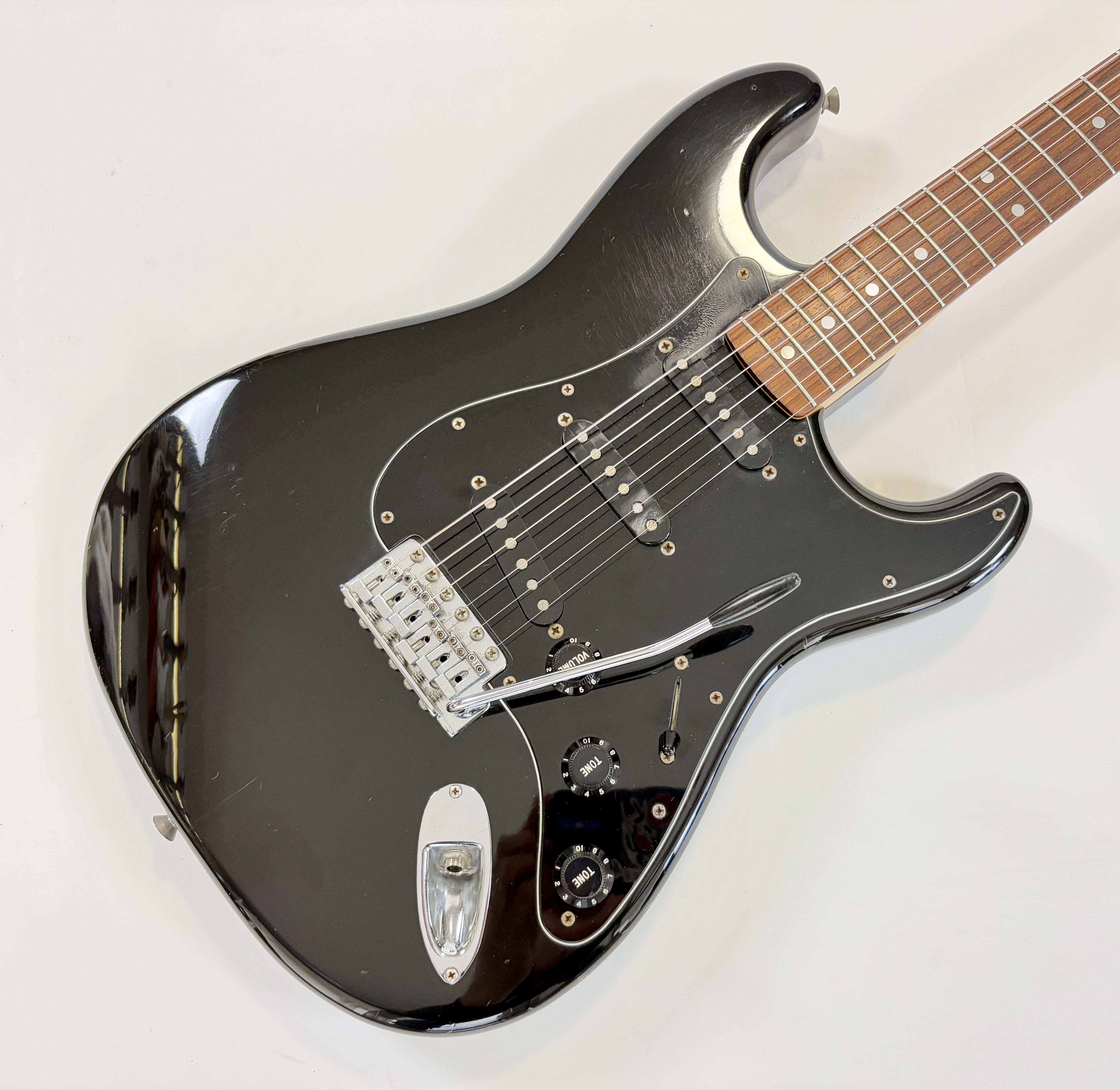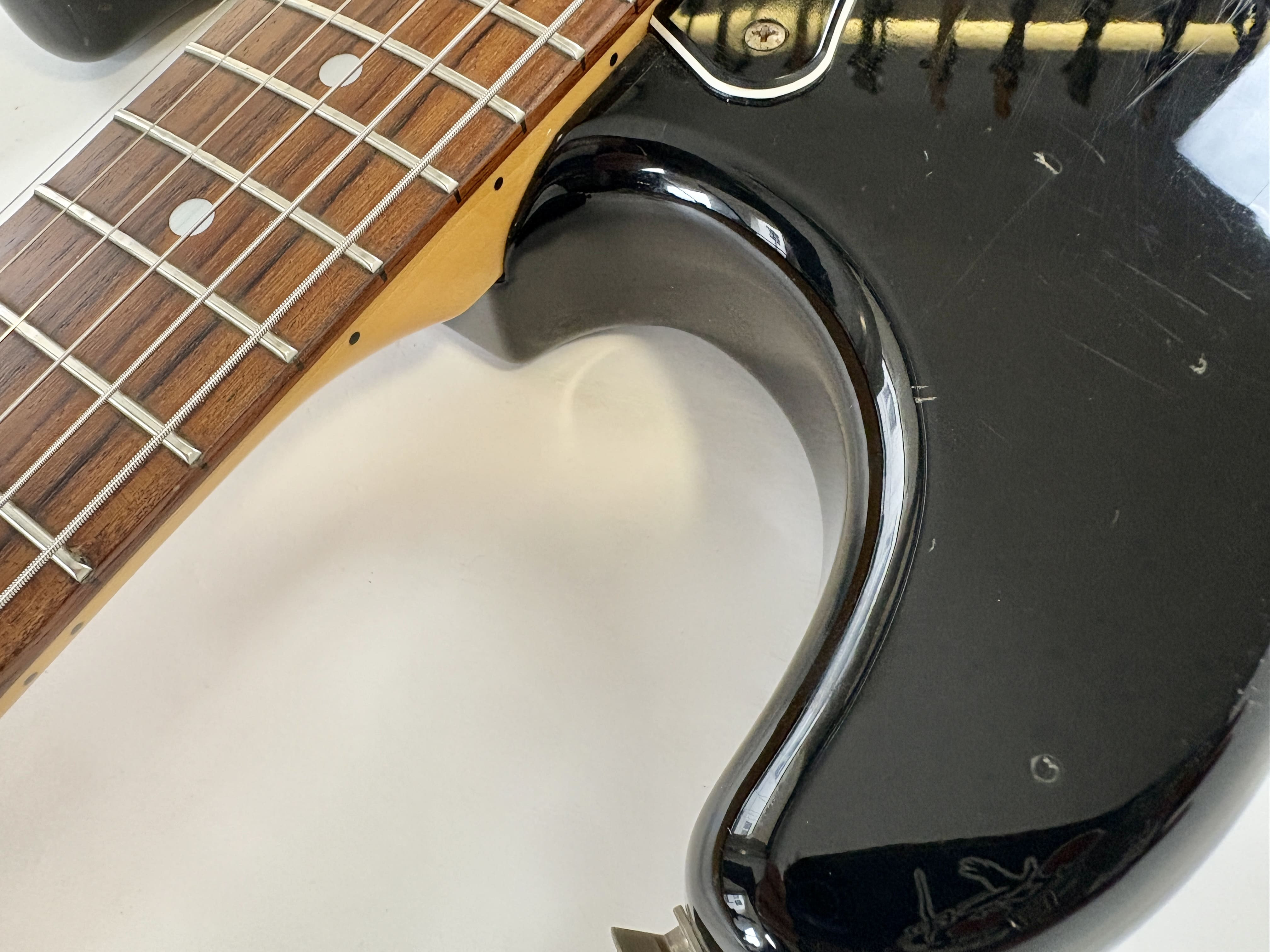 Big-headstock Fender fans, this Strat is for you! It features the classic CBS-era Strat characteristics: three-bolt neck joint, black pickup covers, bullet truss rod, etc. This is a Crafted in Japan model produced between 2006 and 2008, sporting an all-black look and in good condition for its 20 years of age. As usual, it offers the typically flawless Japanese craftsmanship and assembly. This ST-72 model is fitted with American ‘black bottom’ pickups. More pix and details upon request. Shipping worldwide available.