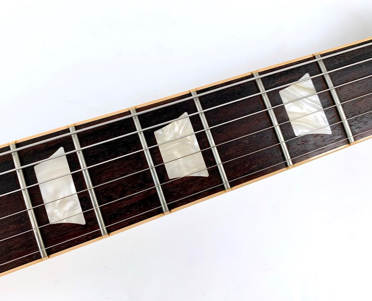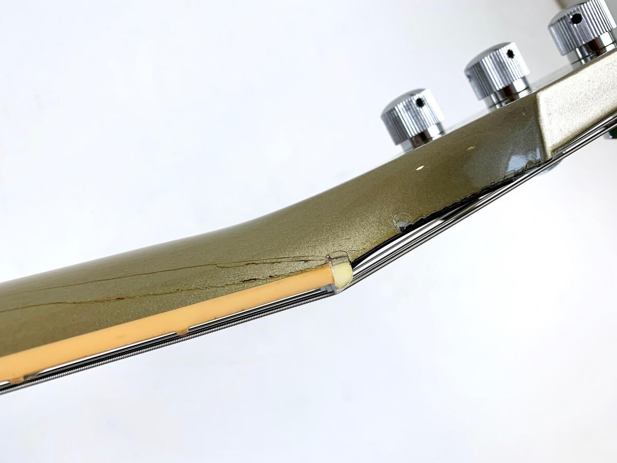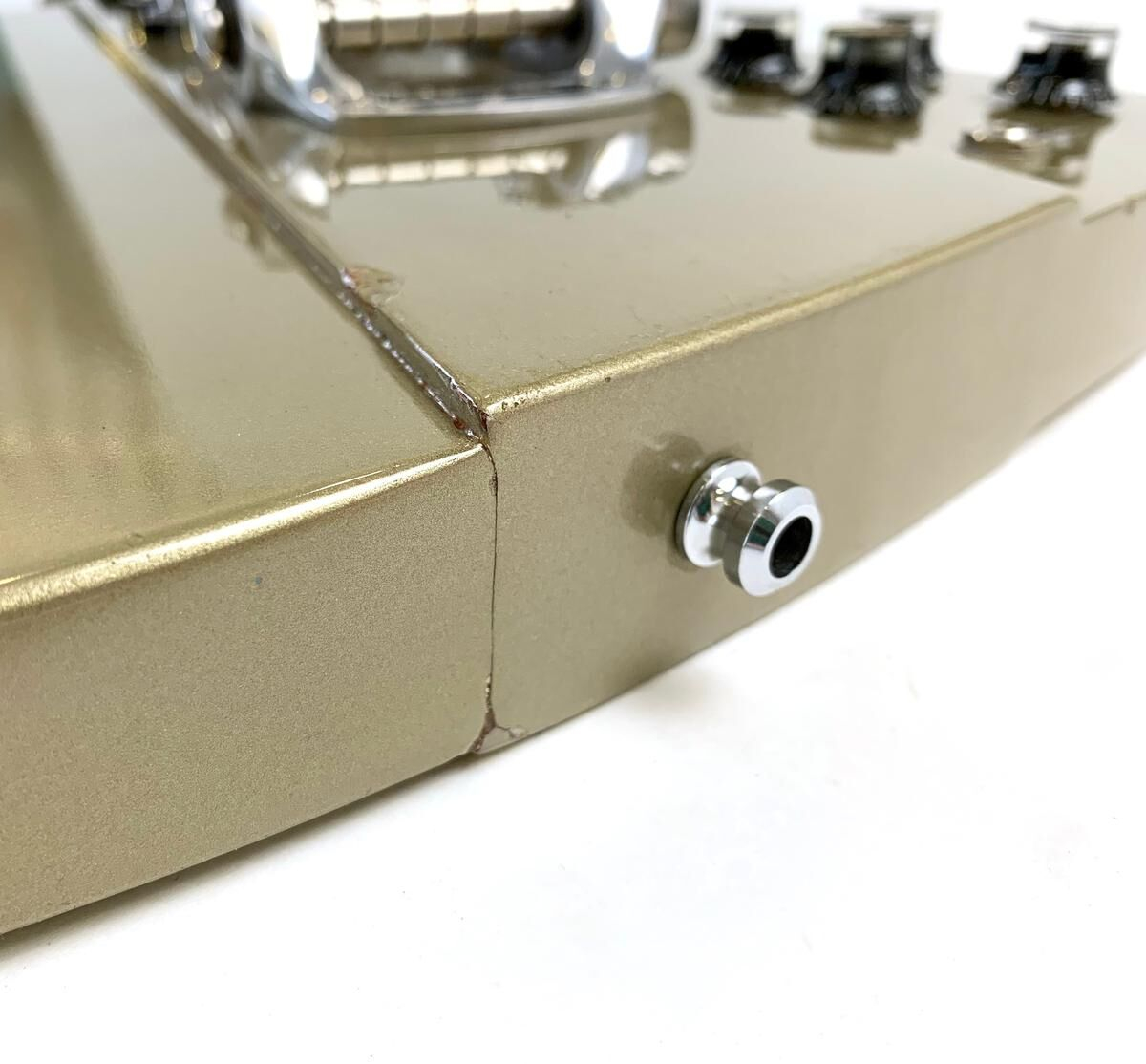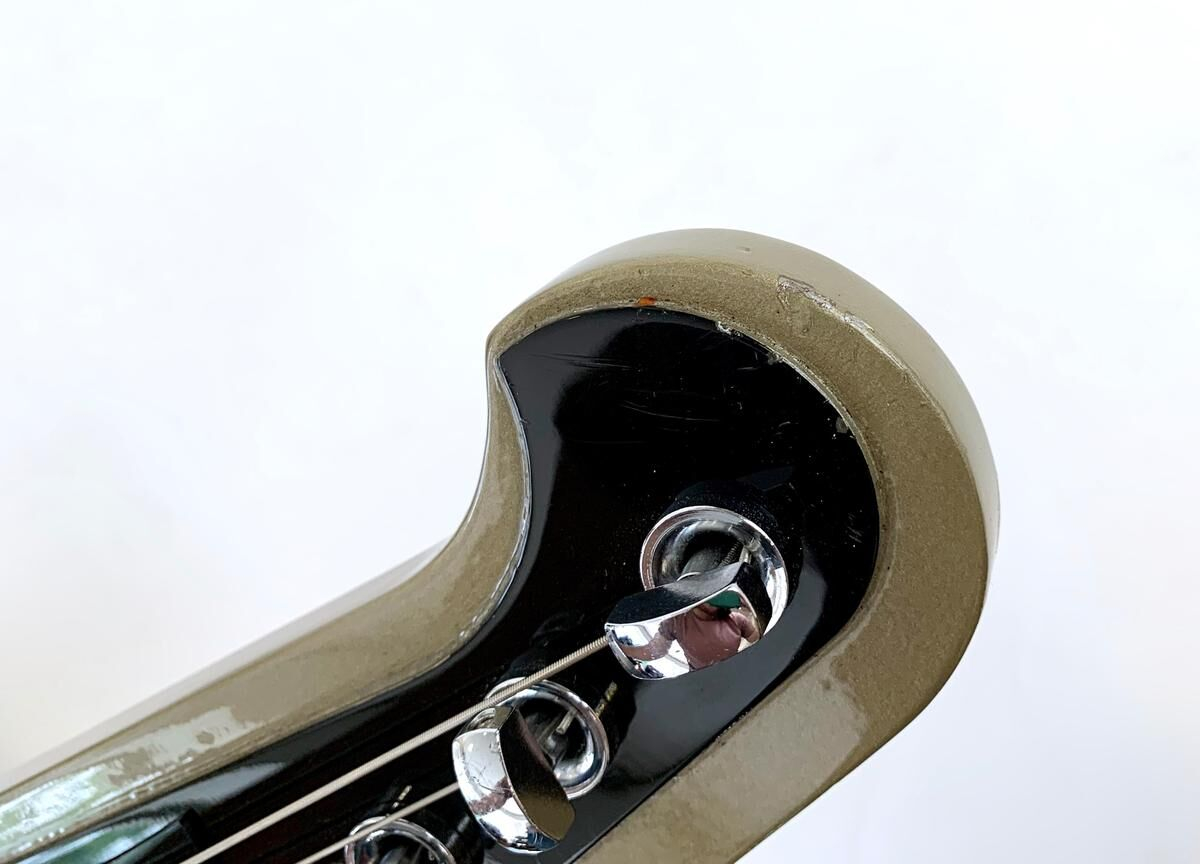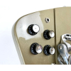 Au début de sa carrière en 1963, la Firebird a un corps dit « reverse » mais à partir de 1965, celui-ci devient « non reverse ». Voici le modèle signature Elliot Easton du groupe The Cars qui est spécial à bien des égards ! En effet les micros sont des Classic 57 et elle dispose de quatre mini-switchs permettant de splitter, de mettre en position hors-phase ou encore de passer le micro chevalet directement au jack. On notera également la présence d’un Bigsby ainsi qu’une belle livrée Gold Mist Poly. Celle-ci est une survivante qui a été réparée après de nombreuses fractures documentées sur notre dossier photo, elle est maintenant opérationnelle ! Vendue avec ses papiers dans son étui d’origine.