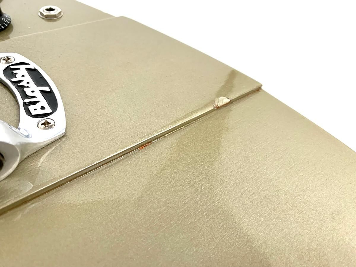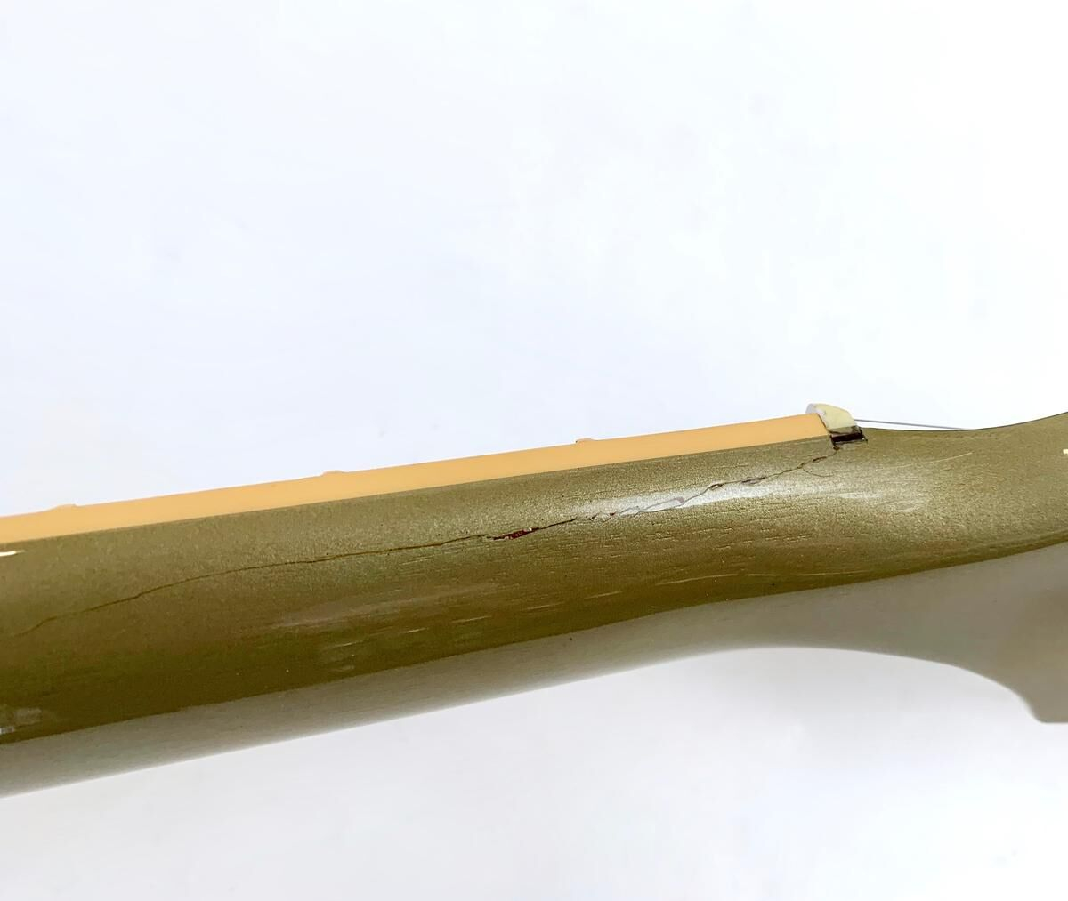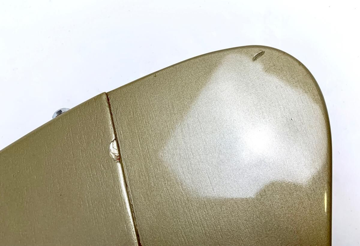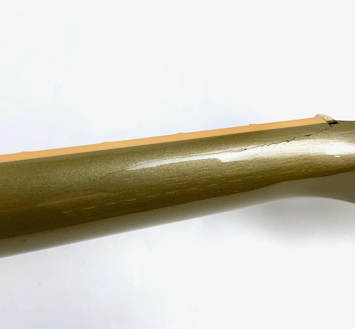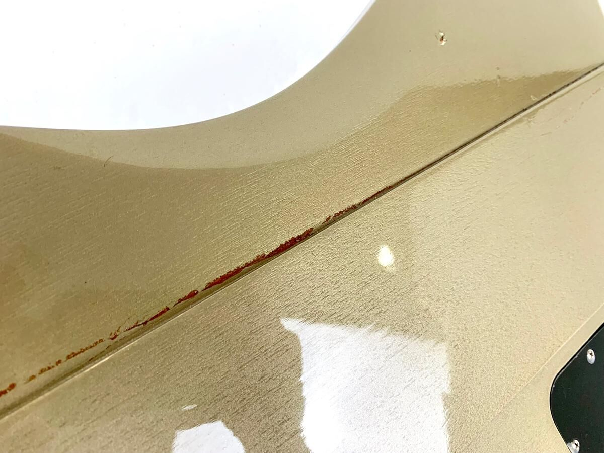 Au début de sa carrière en 1963, la Firebird a un corps dit « reverse » mais à partir de 1965, celui-ci devient « non reverse ». Voici le modèle signature Elliot Easton du groupe The Cars qui est spécial à bien des égards ! En effet les micros sont des Classic 57 et elle dispose de quatre mini-switchs permettant de splitter, de mettre en position hors-phase ou encore de passer le micro chevalet directement au jack. On notera également la présence d’un Bigsby ainsi qu’une belle livrée Gold Mist Poly. Celle-ci est une survivante qui a été réparée après de nombreuses fractures documentées sur notre dossier photo, elle est maintenant opérationnelle ! Vendue avec ses papiers dans son étui d’origine.