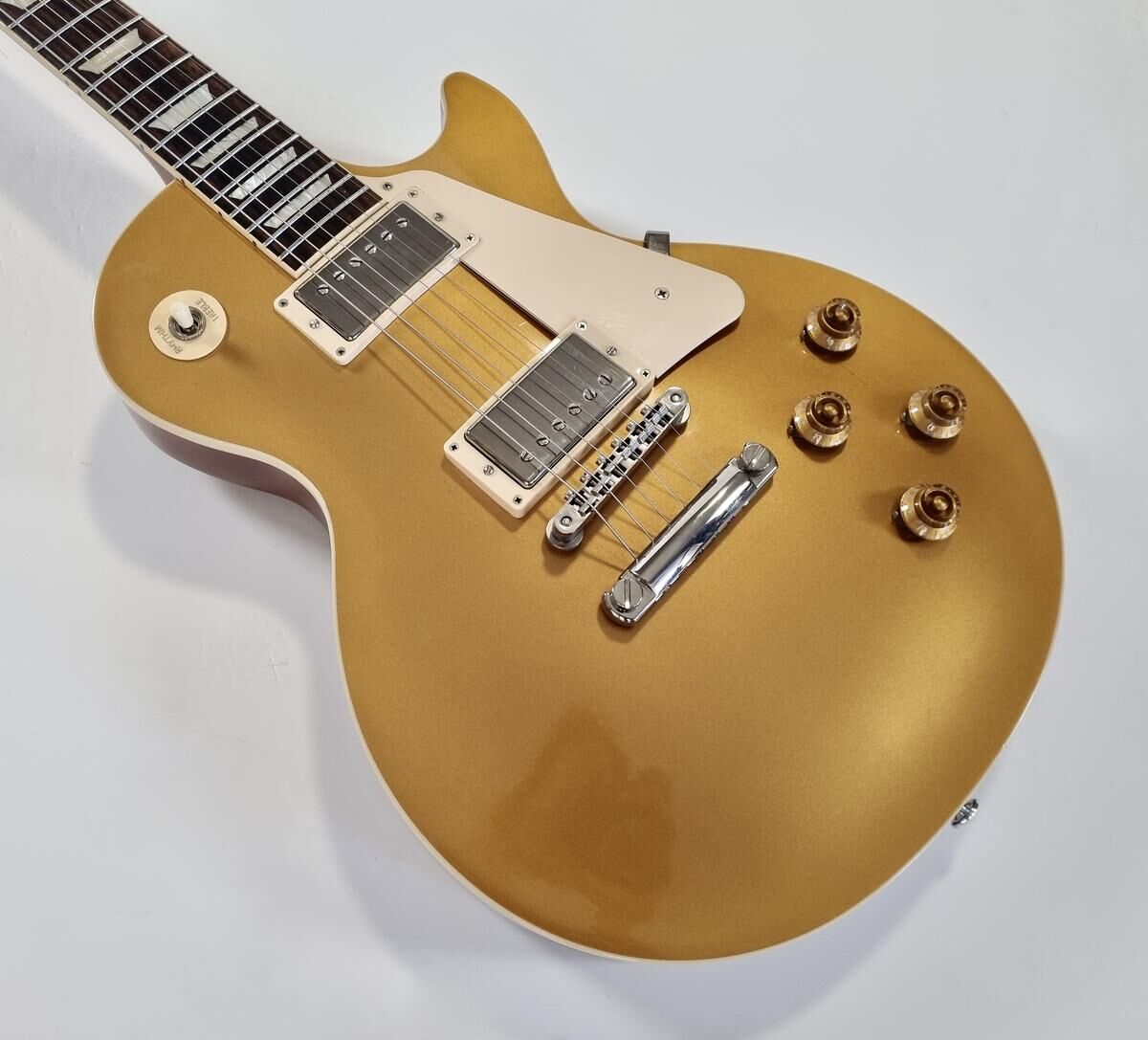 This 2019 Standard, with a 50's neck, features a set of Burstbucker 1 and 2 pickups. Having been played, it already has a certain wear, all in a classic Goldtop finish that recalls the year 1957! Sold in a generic case.
