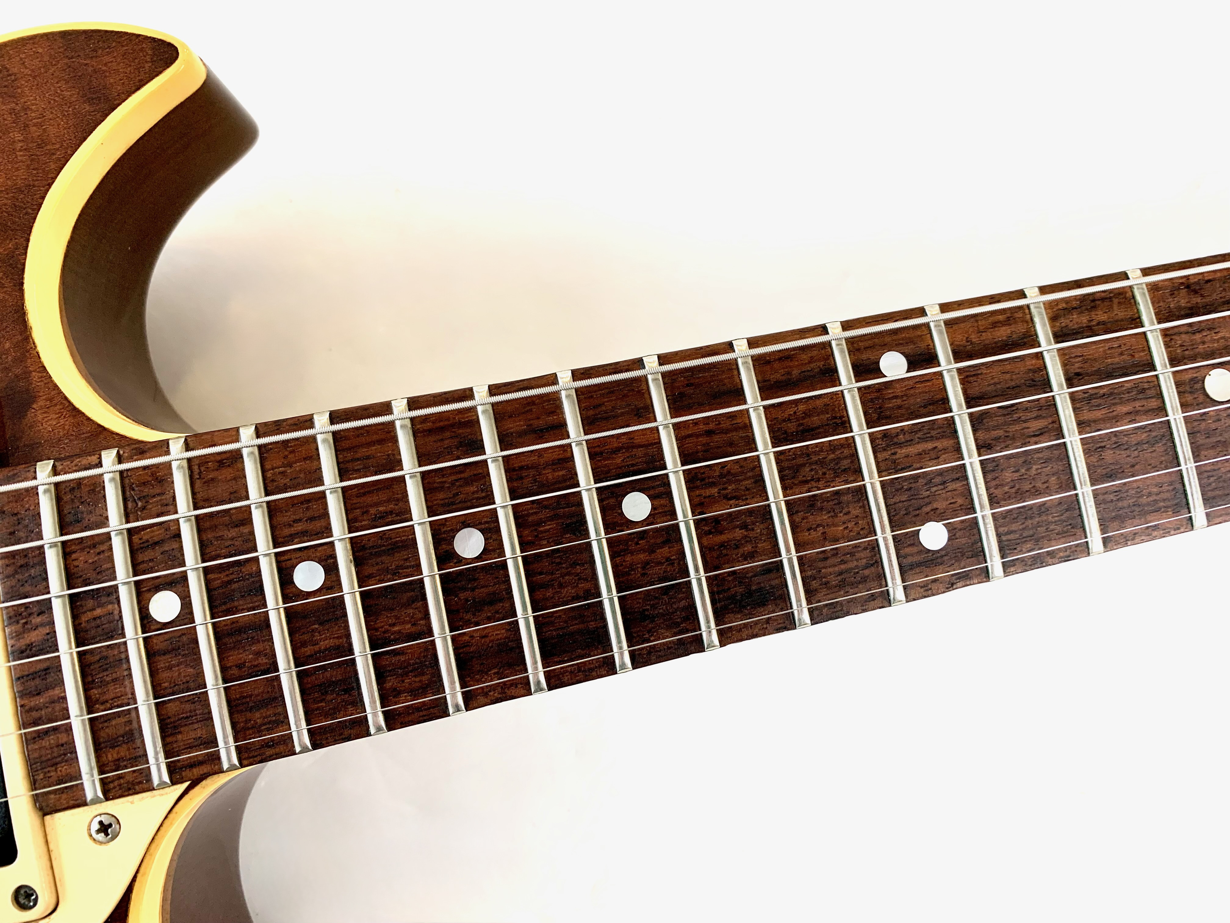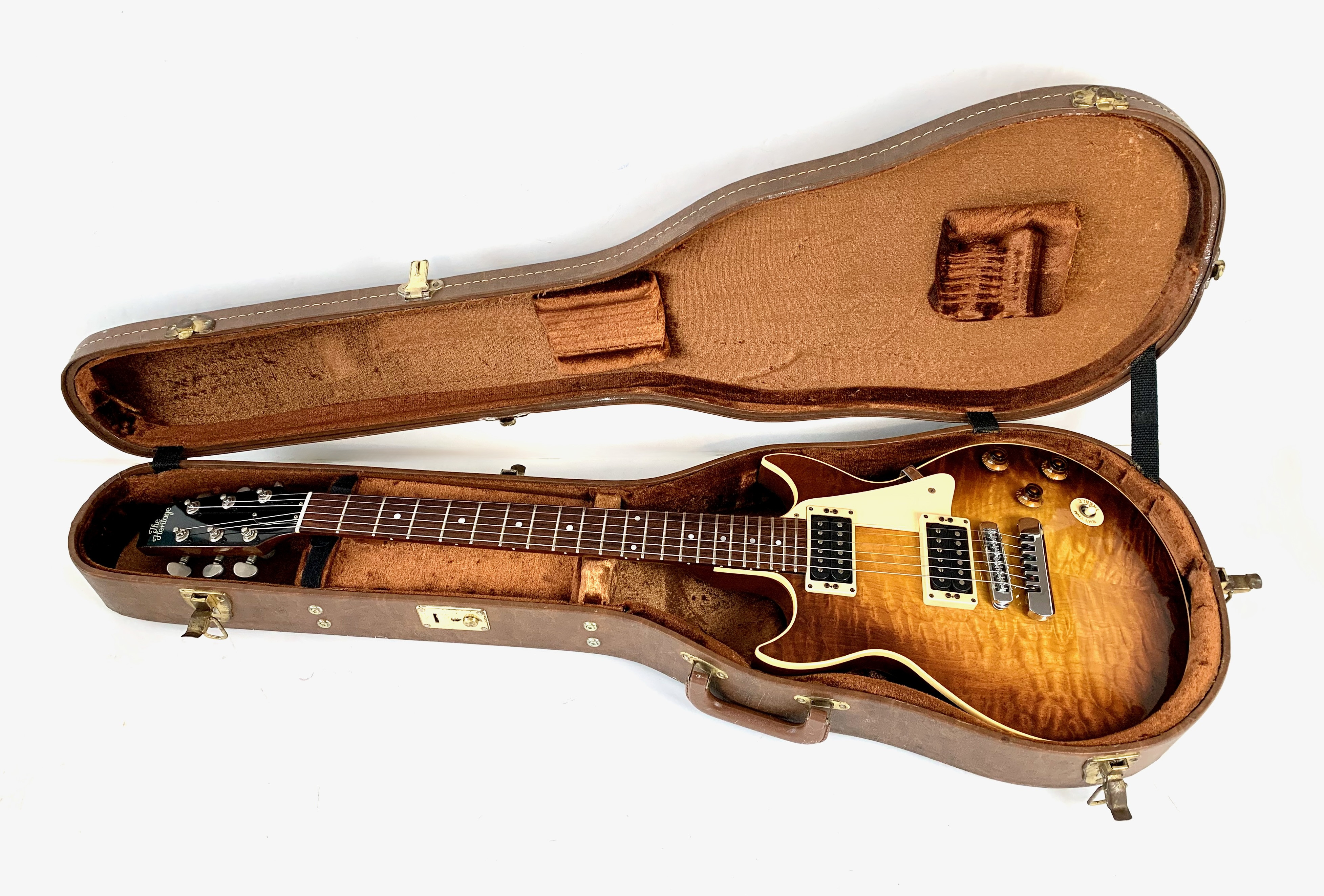 Heritage is a brand founded in 1985 by former employees of the Gibson factory in Kalamazoo. Here is an H-170, an excellent alternative to a Les Paul, presented here in a double-cut format while featuring a slightly thinner body, resulting in a manageable weight of 3.68 kg. The neck and body are made of mahogany, with a rosewood fingerboard and a 12-inch radius. As the photos show, the wood selection is particularly refined, with a top made of CM (Curly Maple). On the electronics side, it is equipped with two Schaller humbuckers, paired with two volume controls, a single tone control, and a three-way toggle switch. Sold in its original case. More pix and details upon request. Shipping worldwide available.