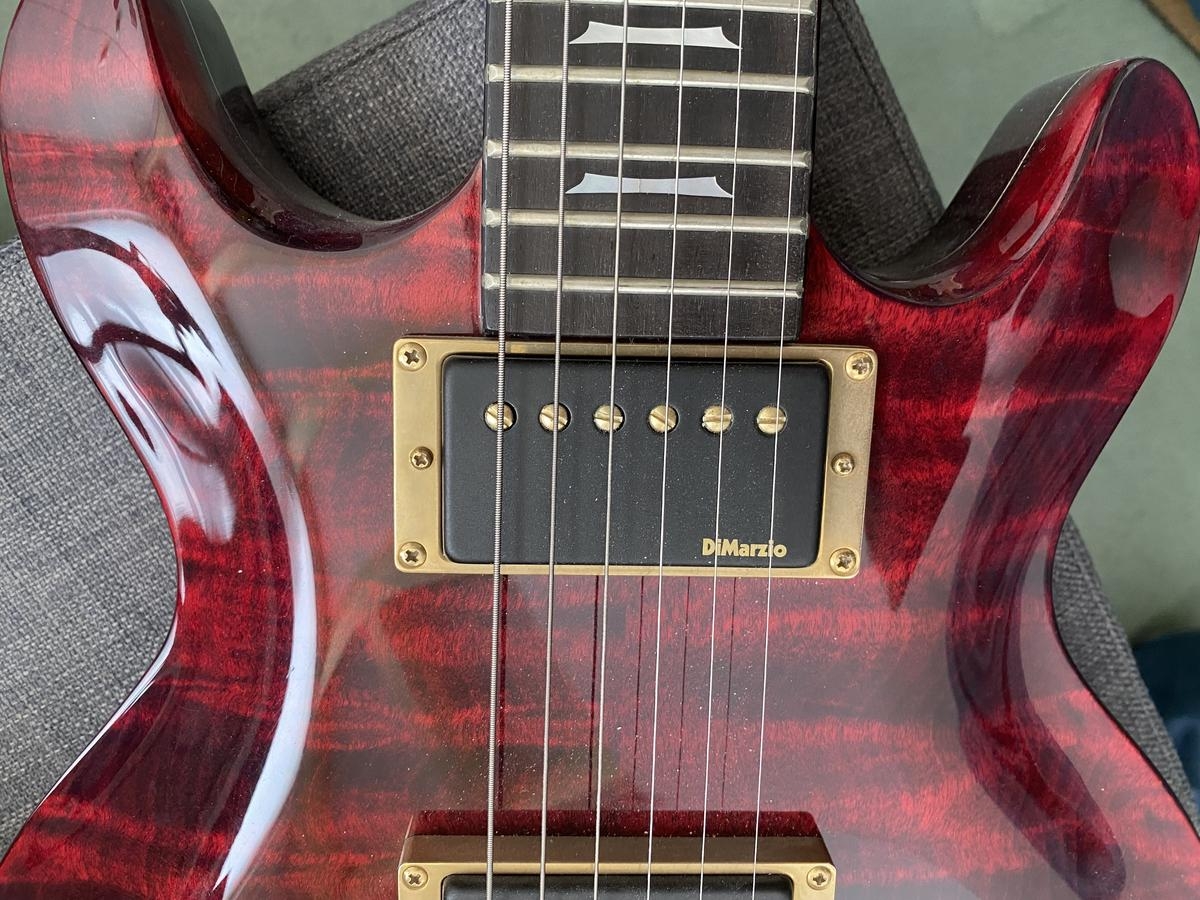 It is equipped with 2 Di Marzio pickups, 2 push-pulls on the volume knobs, and further details can be found online. It is a well-known model.