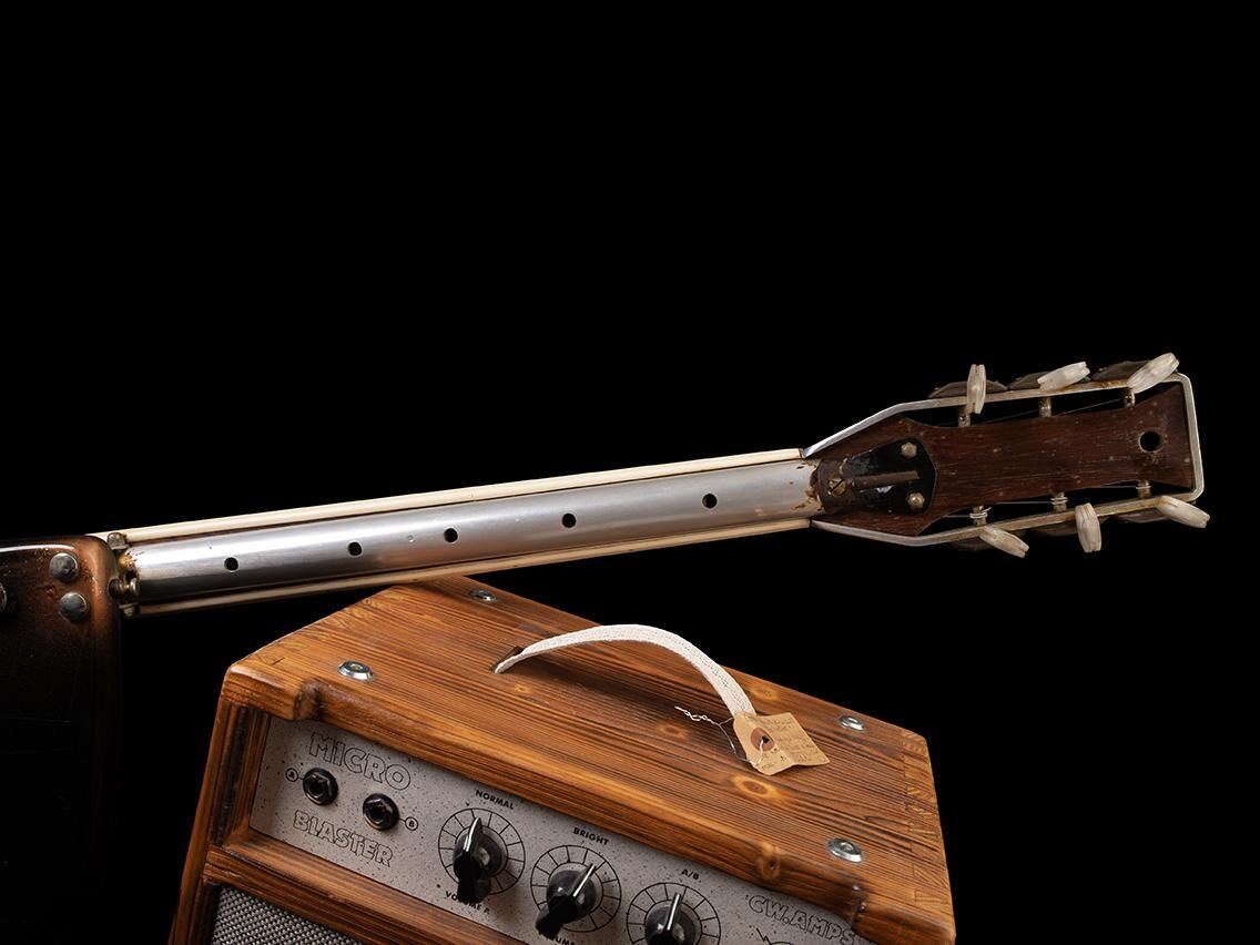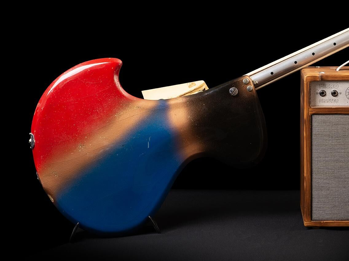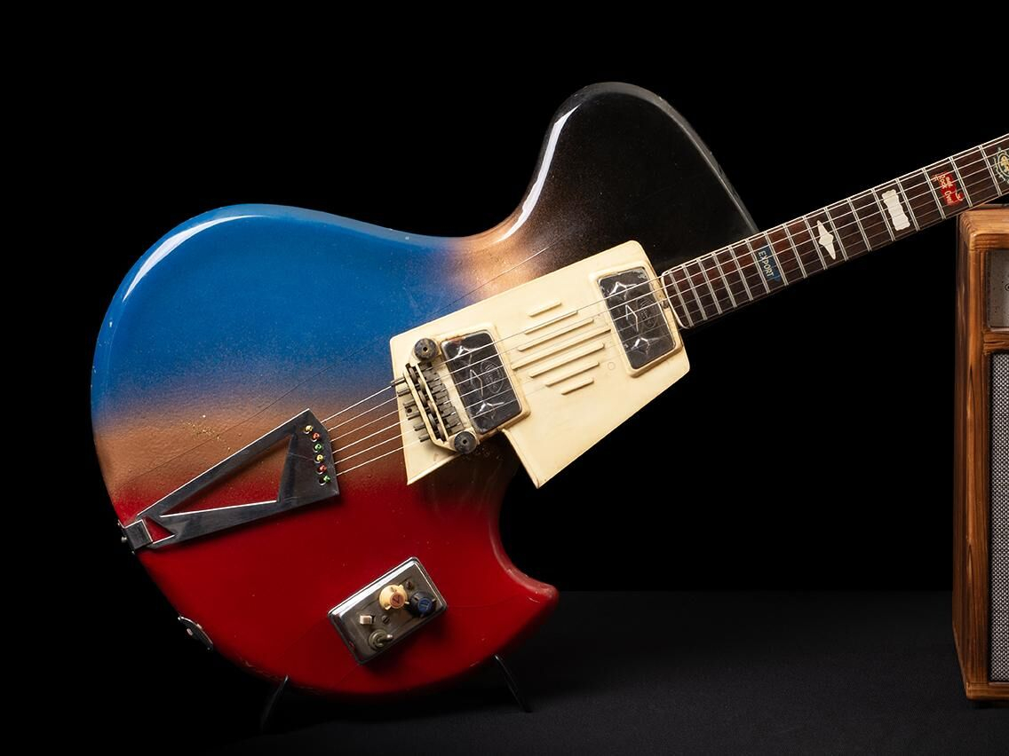 It is a unique piece as each guitar made by Wandré was hand-painted and had a different finish, making it a sought-after instrument by guitar collectors and art enthusiasts alike, as Wandré Pioli was also a designer and architect.
