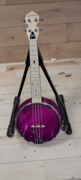 Transparent Little Gem Concert Banjolele with LED, included case, amethyst color