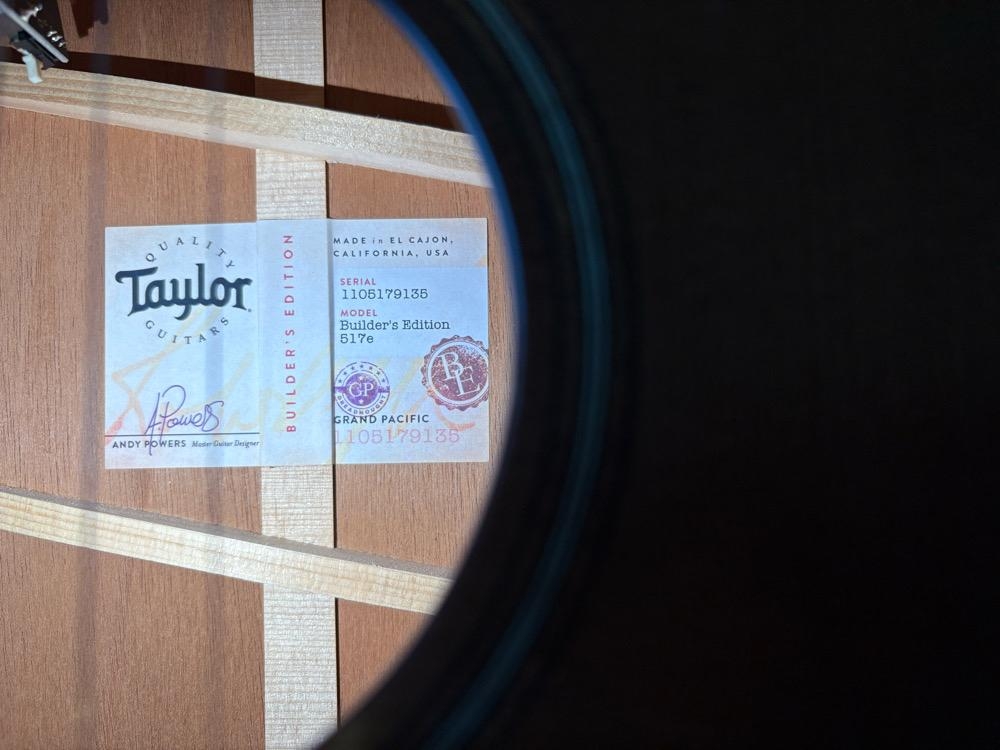 Hello, I am selling this Taylor Builder's Edition 517e WHB guitar. It is in new condition and has been very lightly used. Comes with the original invoice.