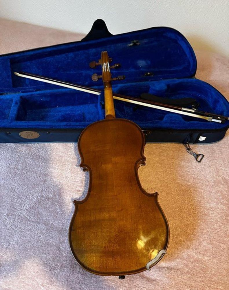 Case, shoulder rest, bow, used rosin included. Recommendation: change the strings.