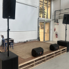-Luces, micrófono, proyector de video, altavoces y monitores (sistema de sonido completo)